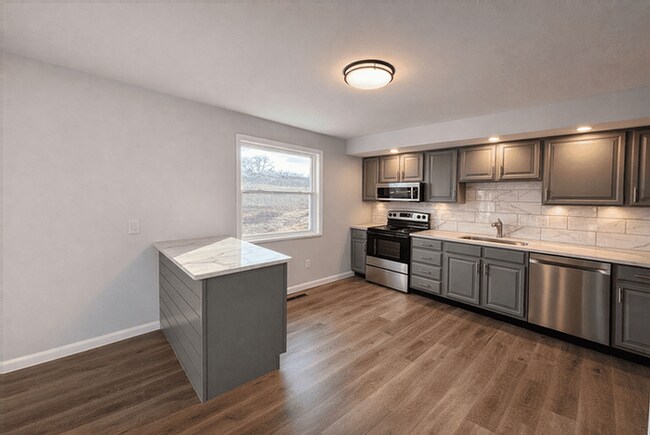 Spacious 3-bedroom, 2-bath ranch-style home offering 1,538 sq ft of living space with central heating and air and ceiling fans throughout. The home features a newly updated kitchen with freshly painted cabinets, new quartz countertops, and new LVP flooring throughout, with carpeted bedrooms for added comfort. The living areas have been freshly painted and include a family room, hardwood and LVP flooring, and two fully renovated bathrooms. Additional features include a microwave, dishwasher, refrigerator, range, outdoor lighting, wheelchair accessibility, a private fenced yard with patio, and a 2-car attached garage. Located near ample park space and within the Northmont School District. Tenant is responsible for all utilities, lawn care, and snow removal.