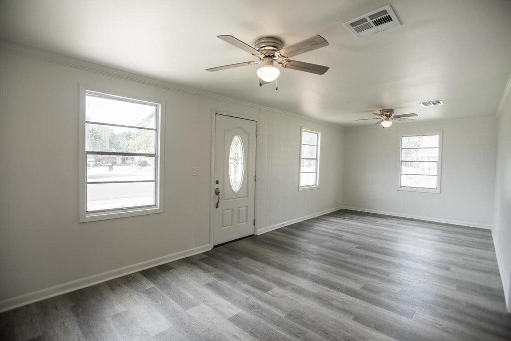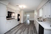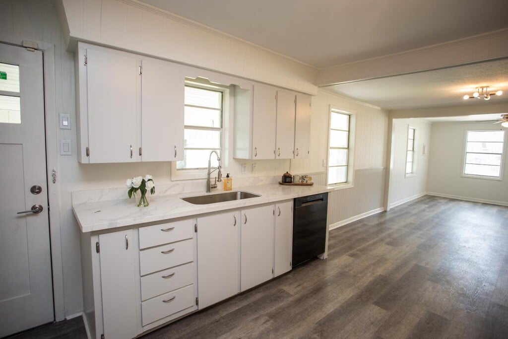 Newly renovated home with beautiful quartz countertops, black stainless-steel appliances, a five-burner gas cooktop with a convenient middle griddle burner, and a stylish stainless-steel apron sink that adds a touch of elegance to the heart of the home. Additional updates include a new water heater, modern bathroom fixtures and finishes, and luxury vinyl flooring throughout. The exterior and interior of the home has been freshly painted and the A/C has been serviced and is running cold. Additionally, the property has a very large, completely fenced in yard to enjoy with family and friends!