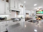 WELCOME TO CARILLON SOUTHLAKE! A luxurious residential community in the heart of DFW. Minutes from DFW Airport, this immaculate Villa Home provides the best of both worlds; simplified, low maintenance living, with abundant community features to stylize your lifestyle with a spectacular swim pavilion amongst lawns and gardens, to a 12-acre man made lake with outdoor pavilions. Park-like features abound with trails, playgrounds and sport courts. At home enjoy an ideal floorplan with 3 bedrooms and an office, all downstairs. A gourmet chef's kitchen functions as the heart of the home with sleek quartz countertops, ceiling height cabinetry, a large center island, gas cooktop with griddle, double ovens and microwave. The split master bedroom is its own sanctuary with a large en suite bath with generous soaking tub and glass enclosed shower. Upstairs features an additional bonus room that functions as a 4th bedroom or game room with its own full bath. Electric car charging station!