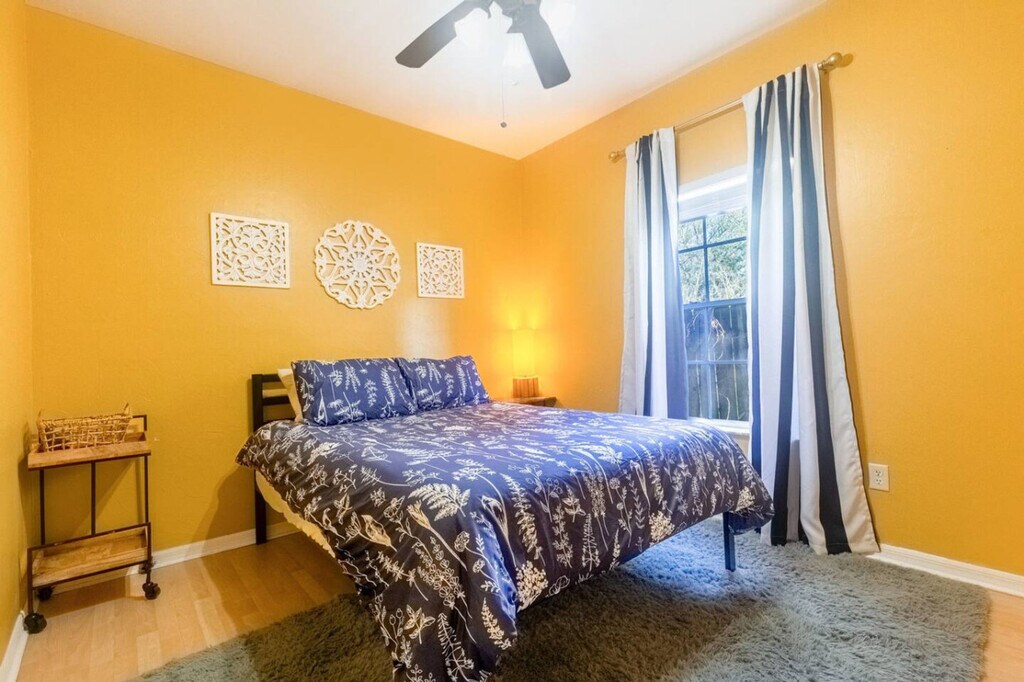 Feel at home in this comfortable, historic apartment, part of a duplex in the downtown historic neighborhood. This spacious apartment has 2 bedrooms and 1 bathroom. This apartment features a spacious living area, washer and dryer, full kitchen, and dining area. Fast Wi-Fi and comfortable furnishings are included. One pet is allowed if disclosed during booking. Located in the historic downtown Gainesville neighborhood, this apartment is just 9 blocks to UF, 3 blocks from the Santa Fe Blount Center, and within walking distance of downtown Gainesville's restaurants and parks. It's perfect for a family or co-workers seeking a short-term or long-term stay in Gainesville. Smoking inside the home will incur a $250 fee. Quiet hours are from 9:30 pm to 8 am, and you may be asked to leave without a refund for violations. If caught with an unreported pet, a $200 fee will be charged. A $100 fee will be charged if dog waste is left behind. [SI]