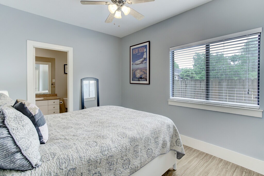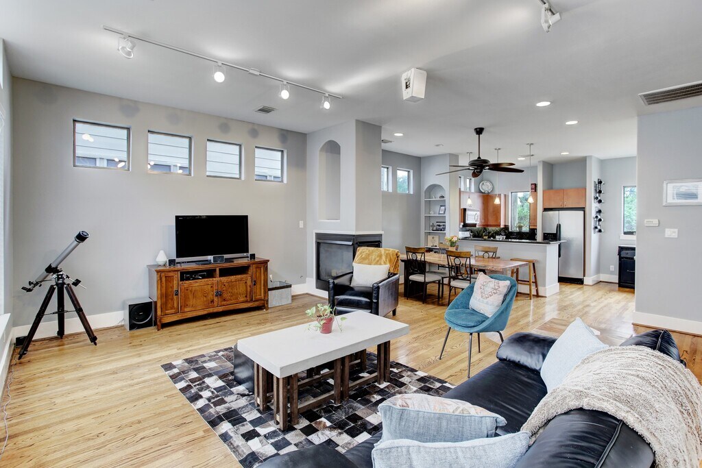 Beautifully maintained,RECENTLY UPDATED three-story home in Rice Military community,featuring a spacious floor plan,private side yard,and attached two-car garage. First-floor bedroom with RECENTLY UPDATED en-suite bath is perfect for guests or a home office. The main living space offers soaring ceilings,hardwood floors,a gas fireplace,and abundant natural light. Kitchen includes granite counters,ample cabinet storage,and a breakfast bar open to the dining and living areas. Powder bathroom has been RECENTLY UPDATED with quartz countertop & soft close cabinets. Upstairs,the private primary suite features vaulted ceilings,large walk-in closets,and an updated spa-style bath with soaking tub and frameless glass shower. Third bedroom on 3rd floor provides a nice space for a guest bedroom. The 3rd full bathroom has been RECENTLY UPDATED with quartz countertop & soft close cabinets. Prime location near Memorial Park,Washington Ave,Downtown,and more. LOCATION LOCATION LOCATION!! MLS# 444833