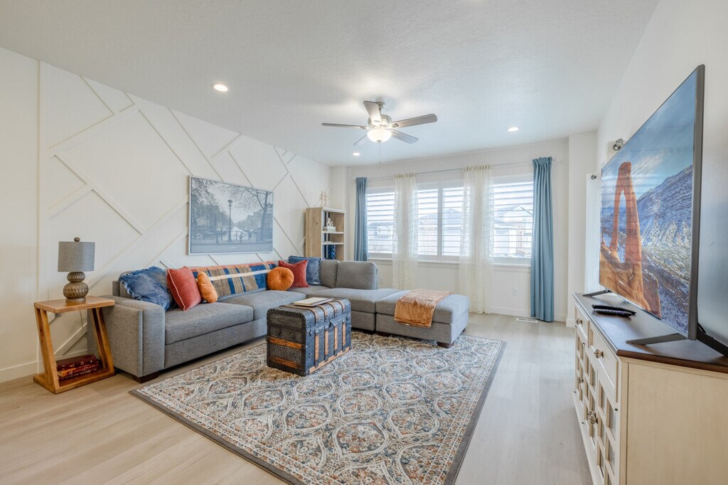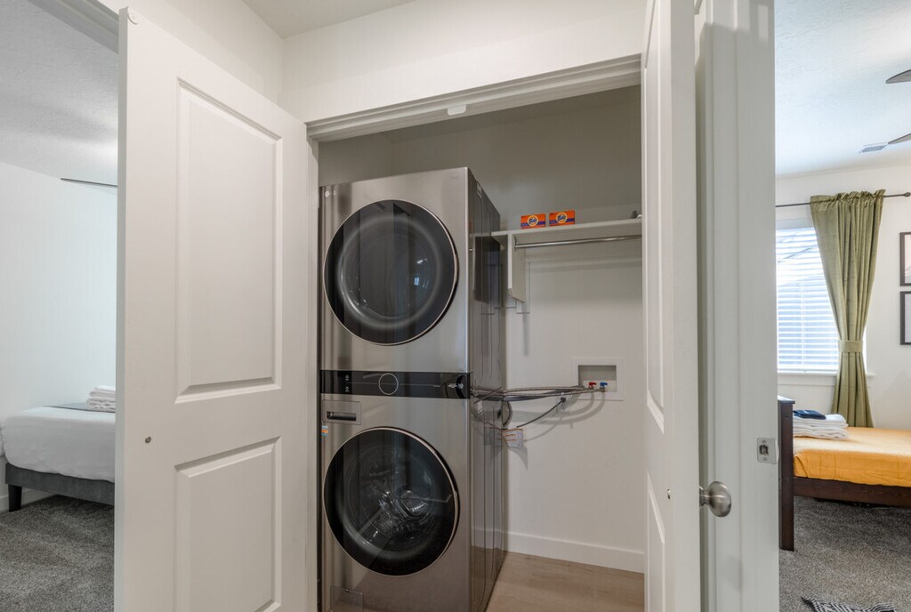 Welcome to your perfect retreat! Step into your home away from home, ideal for families and remote workers alike. This charming retreat blends warmth, comfort, and convenience, offering a serene atmosphere with close proximity to BYU, UVU, and some of Utah’s top attractions. Whether you’re exploring the area or seeking peaceful relaxation, this home promises a memorable escape for everyone. Enter a modern haven, where an open-concept kitchen flows seamlessly into the cozy living space. The fully equipped kitchen allows you to cook up culinary delights with a spacious pantry and everything you need. Gather around the chic dining table or kick back on the comfy sectional with your favorite shows on the flat-screen TV. The master bedroom serves as your private retreat with a king-size bed, en-suite bathroom, and tranquil vibes. Additional bedrooms offer a queen-size bed, a full-size bed, and two twin beds, each designed for restful nights. The property includes a separate, occupied studio apartment on the first floor with no shared access. Located in a cozy, new, and quiet neighborhood, this property offers a peaceful escape. Enjoy easy access to local favorites such as Utah Valley University, Brigham Young University, Thanksgiving Point, Sundance Ski Resorts, Provo Canyon, Downtown Salt Lake City, and Salt Lake City International Airport, with distances ranging from 10 to 36 minutes via popular navigation apps. No smoking or vaping is allowed on the premises, with a $200 per day fee for violations. Pet-friendly properties allow pets at $10 per pet per day, while unauthorized pets incur a $250 fee. Quiet hours begin at 10:00 PM each night and continue until sunrise. Early check-in and late check-out requests are subject to availability and fees. Outdoor security cameras may be in use, but no cameras are located in or pointing to indoor spaces. Parking information is available on the listing, and street parking is only permitted where signage indicates. [SI]