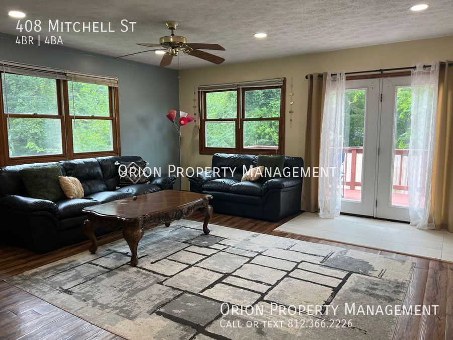 This property boasts a spacious layout with four bedrooms, each featuring a private bath, and is ideally located close to Indiana University, offering easy access to campus life. With amenities like an in-unit washer/dryer, attached garage, and a large back deck, it combines comfort with convenience. Available by the room for a semester lease. Sewage included Central Air Common Kitchenette Common Laundry On Site Covered Front Porch Free Parking Free Trash Removal Large Back Deck Large Lot Microwave Included Near Campus Near/Downtown Parking Lot Free Washer/Dryer In Unit