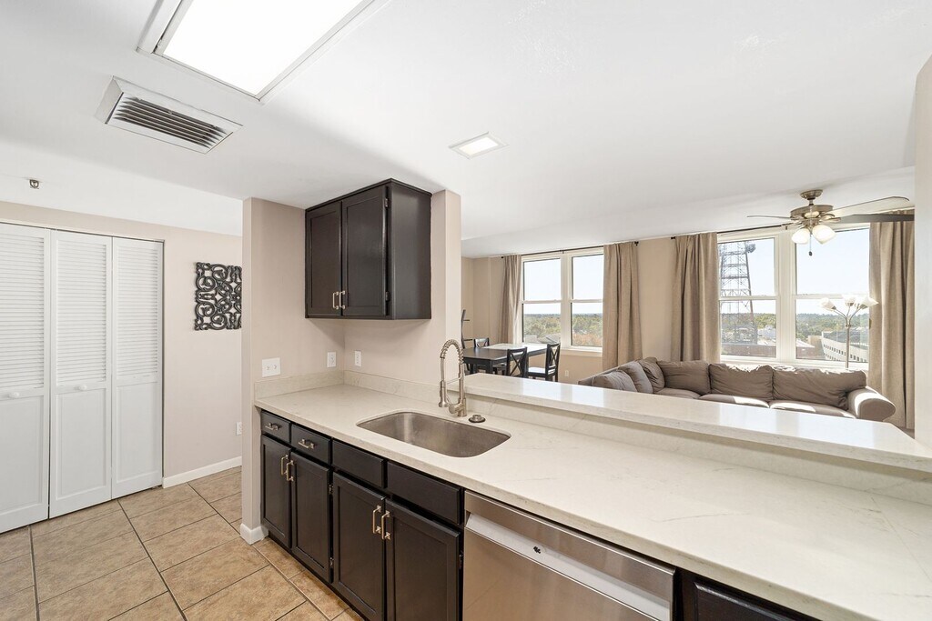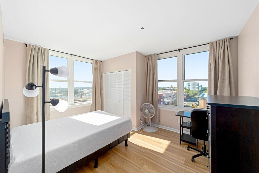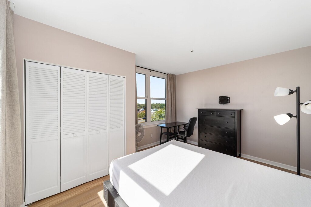 One of a kind, Beautifully Upgraded 2/2 In the Heart of Downtown Gainesville. - 2 bedroom 2 bathroom remodeled unit on the 7th floor of the historic Seagle Building - Both bathrooms have been renovated - Wood look flooring and tile throughout - no carpet - Brand new windows - Full of natural light with unmatched views of the city - Upgraded stainless steel appliances - Washer and dryer included - 2 reserved parking spaces under the building included - The building has secure access for entry to the 9th floor - Walk to the hottest restaurants, music venues, and parks in downtown Gainesville - Internet and water included. The tenants are responsible for paying electricity - This condo is available to move into Immediately for a lease through 7/31/2026, with an immediate option to renew at a rate of $2,200. The property is has the option of being leased with the below items, or they can be removed prior to move in. - Common Area: Sofa, ottoman, dining table & chairs, TV stand w/TV, bookcase, 2 bar stools, - Bedrooms: 2 beds, 2 6-cube organizer shelves, 2 dressers, 1 desk, 1 TV In order to reserve the unit, the following would be required: 1) Each tenant and co-signer fill out and submit a credit/criminal background check application. The cost is $60/person. *If you have your credit frozen, please un-freeze it so we can run a credit check. If you fail to do so, an additional application fee will be applied. 2) Proof of income for 3x the monthly rental rate and a 650 minimum credit score, or a guarantor to co-sign the lease who meets these requirements. 3) A signed lease 4) Deposits due at lease signing (in total, not per person): Refundable Security Deposit: $1,400 Non-refundable Redecoration Fee: $600 Air Filter Fee: Equal to $10/filter for each month of the lease Please email us at or call our office at ext. 1 for more information or to schedule a tour!