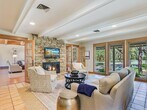 Great single-level family home in desirable Westwood Neighborhood in Westlake. Zoned to Eanes Elementary; Hill Country Middle; Westlake High. Walking distance to coffee shops, grocery, pharmacy, several private/public schools (all Eanes zoned schools + Trinity + Acton Academy are all a short walk). Approx 2800 sq. ft. featuring 3 beds, 2.5 baths, 2 very nice living rooms. Renovated about 15 years ago by previous owner who was an architect and featuring a GREAT family room with vaulted wood beamed ceilings that feels like a mountain lodge. Additional updates in 2025 including updated guest bathroom, fresh paint. Impressive double-sided fireplace serves the great/family room as well as the sitting room/dining room. Beautiful and private level back yard backing to 1+ acre homes on neighboring street behind. Home has wood and tile in main public spaces, and carpet in bedrooms. 2 car garage. Walk / Scooter / Bike friendly neighborhood. Lease rate of $7900 is based on a lease starting on February 1st (currently tenant-occupied through January).