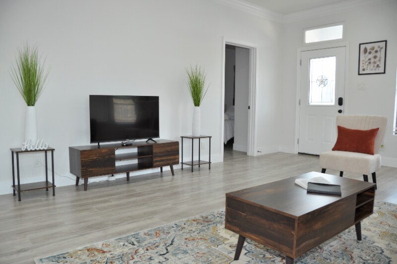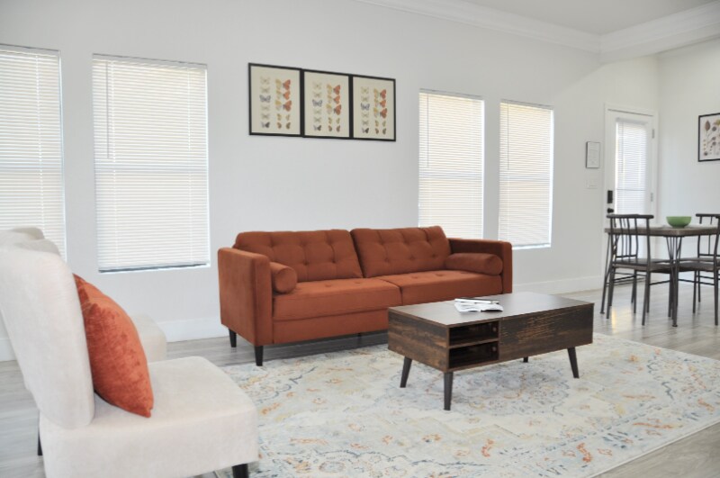 Property Id: 2180124 Welcome to our fully furnished, modern and newly renovated 3 bed / 3 bath home just north of downtown Houston! You will love the security and comfort that our fully gated home provides. Our home is walking distance (less than a block) to the light rail which can get you most places in Houston and only a short drive to Medical Center, the Galleria and downtown! Enjoy the spacious rooms, each with its own private full bathroom and TV! We have a fully equipped kitchen, fast Wi-Fi, Smart TVs, in-home laundry, and free parking for up to 5 vehicles in our gated lot. Pets welcome 2 min walk to the light rail 2 min to drive downtown