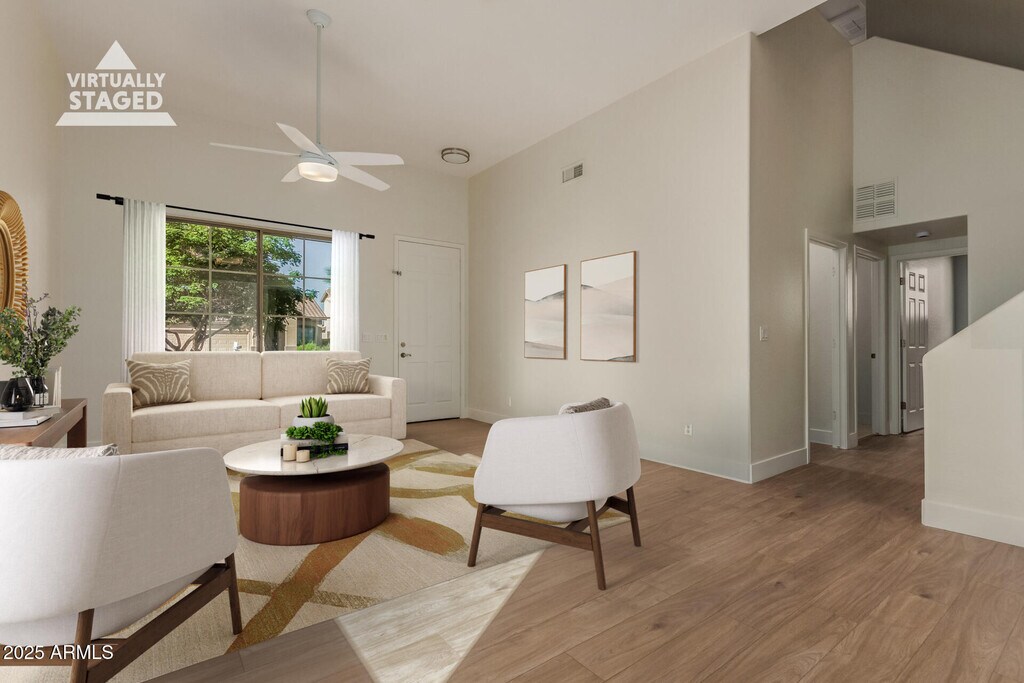 Nestled in Anthem on a cul-de-sac street,this is a spacious 4 bedroom w/den home with a pool. East facing backyard is easy maintenance with cobblestone. Plenty of space inside and out w/neutral colors. Primary bedroom and office is downstairs with 3 bedrooms and full bath upstairs. Upgraded stainless appliances (2020 and 2023) New A/C 2022) Efficient pool pump and refurbished cool decking(2023) Newly laid LVP and tile in baths (2025) Fresh paint (2025) Loads of walking/running/biking trails. A short distance to Anthem Elementary,Community Center,Anthem Park w/lake,skate park,baseball fields and it's just around the corner from Boulder Creek HS. Experience the charm of Anthem's ''Living in Abundance''