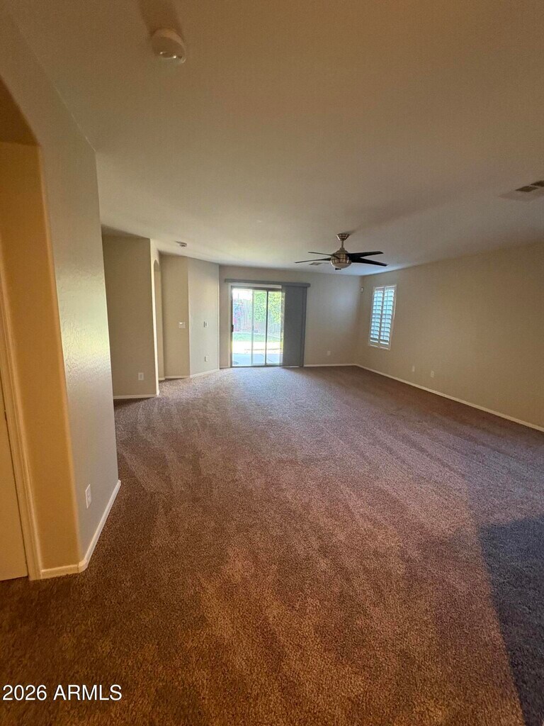 Great single-level corner lot home in Power Ranch. Enjoy an eat-in kitchen offering a pantry and tons of cabinet space. Home also features a great room style living area and a master bedroom complete with a walk-in closet and en suite. Master bedroom includes an extended bay window allowing tons of natural light to shine in. Just off the living room you will find the laundry room,two more bedrooms,and another bathroom. Gorgeous,white plantation shutters throughout the entire home as well as brand new carpeting and paint. In the backyard enjoy a covered patio and beautiful developed yard with beautiful trees and plants. Close to nearby schools,shopping and 202 freeway. Come check it out now before it's gone!