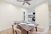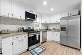 Welcome to 409 66th Street — a beautifully updated 4-bedroom, 2-bath apartment offering the perfect blend of modern finishes, comfort, and unbeatable convenience in one of Hudson County’s most desirable neighborhoods. Step inside and be greeted by wide-plank wood-style flooring, soft recessed lighting, and a flowing open-concept layout that connects your dining, living, and kitchen spaces. The kitchen is a true standout: fully equipped with stainless steel appliances, granite countertops, a stylish tile backsplash, and a coffee bar complete with espresso machine — ready for your daily routine or guest entertaining. Every room is thoughtfully furnished, from queen-size beds with fresh linens to plush seating areas and custom accent walls that add a pop of personality. Enjoy the rare perks of exclusive in-unit laundry, garage and off-street parking, and central heating and cooling — all wrapped in a quiet, residential setting. Located just blocks from Bergenline Avenue, you’re minutes from Manhattan-bound buses, shops, international cuisine, and parks along the Hudson River. Grab groceries from Trader Joe’s and/or Whole Foods, both under 15 minutes away. With easy access to NYC, top-rated schools, and a diverse, family-friendly community, this home is ideal for professionals and families!