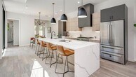 This modern, luxury duplex lives like a single-family home with soundproof walls, thoughtfully curated with soaring 15ft tall ceilings, and massive picture windows that bring in copious amounts of natural light. Birch flooring throughout the home with luxe tile selections in all bathrooms and the kitchen. Upon entering the home, you will find a contemporary open floor plan connecting the living room, dining room, and gourmet kitchen with gorgeous cabinets, high-end quartz countertops with a large waterfall island, and a spacious living area perfect for entertaining. One bedroom located downstairs that could double as a wonderful home office, with a connected full bath. On the second floor, you'll find your primary suite, exquisite primary bath, walk-in and walk-through primary closet, laundry room equipped with soaking sink, and another guest bedroom with full bath. The star of the show is the enormous open loft space that could be used as a second living space, game room, home gym, home office, or home theater. The possibilities are endless! Private backyard spaces and large front yards, as well as covered carport w/ EV Charger and separate driveways. Smart (WiFi) Irrigation System **Refrigerator, Washer & Dryer, are included with the home. *Lawn Care & Prefix Service is also included. ** Rental Criteria: Income 3 x rent, a Credit score of 650+, Clean Background, and Clean Rental History. Apply @