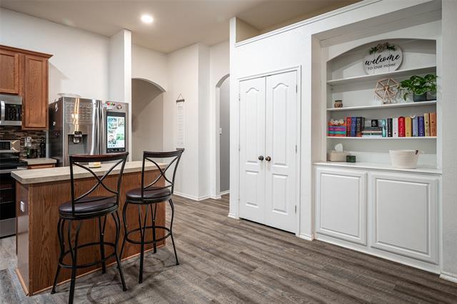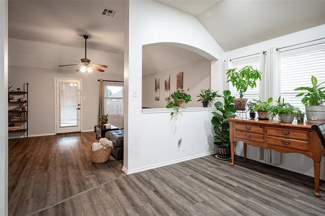 Move-in Ready home on a cul-de-sac. Home features two living and dining rooms, split bedrooms, window blinds, 7 ceiling fans, separate laundry room, built in open kitchen cabinet, recess lighting added in kitchen, fresh paint in kitchen other rooms painted in the last few years and touched up recently. Bathrooms have updated faucets, kitchen has updated appliances and vinyl plank flooring throughout the entire home. Enjoy the large backyard with added slab and covered deck. Pictures taken June 2023.