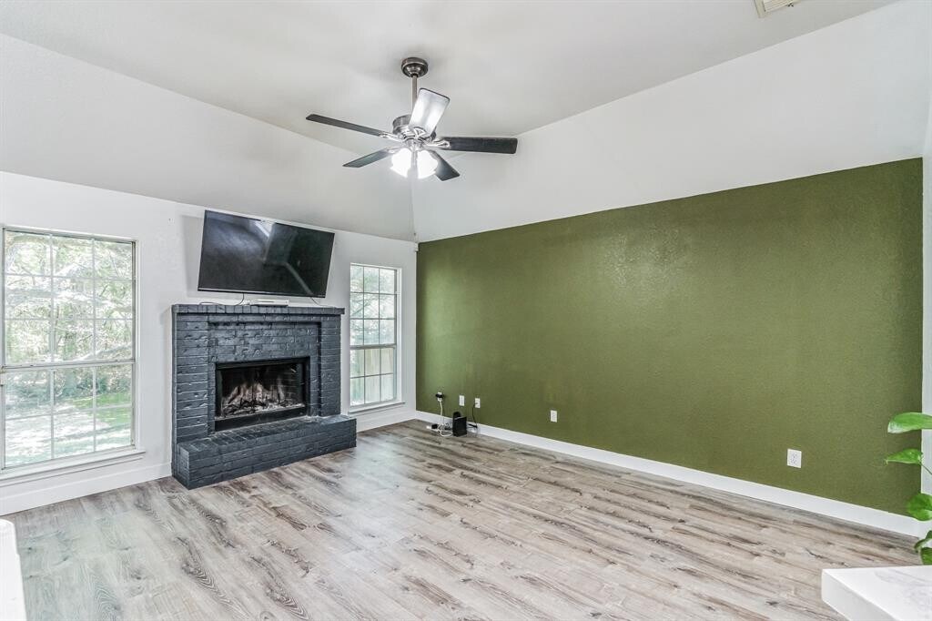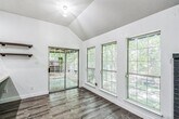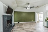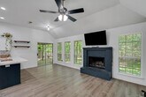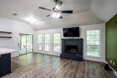 This newly updated well lit home has open floor plan with high ceilings, fresh paint, new fixtures, and luxury vinyl plank flooring throughout most of the abode. New kitchen cabinets and hardware, newly custom countertops, tile backsplash, breathtaking sink and stainless steel appliances. A large primary bedroom boasts a new vanity, and a separate shower in the en-suite. Three other bedrooms have been outfitted with closet inserts and styled for maximum enjoyment. A guest bathroom sits near the bedrooms and has also been updated with a new vanity, toilet and fixtures. A brick fireplace grace the living room and lead to an oversized covered patio. Sitting in the backyard is an ample sized or flex space suited for many other purposes. Located in an established and highly coveted area and two kayaks and a security safe supplied for amenities, sitting between two large lakes. Five minutes from still house hollow lake and many hiking trails. This home is sure to please. Pets ok, limit three. *** Resident must choose between two resident benefit packages at time of application.