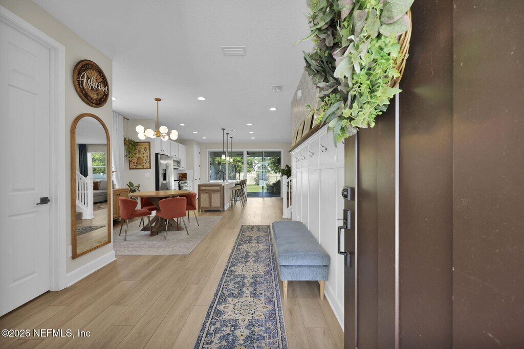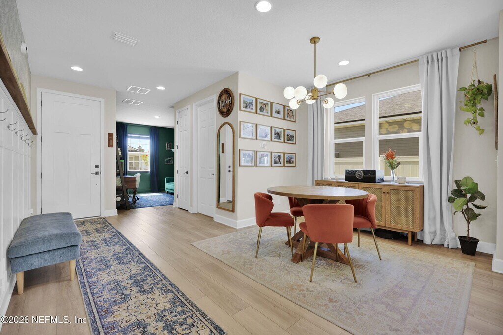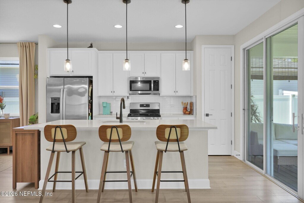 Get ready to fall in love with a home that perfectly blends style,comfort,and personality. Just three years young,this beautiful home offers three spacious bedrooms plus TWO incredible flex spaces: a loft upstairs and a custom-designed office that feels straight out of a magazine. From the moment you walk in,you will be greeted by adorable finishes,eye-catching accent walls,upgraded lighting,and a thoughtfully designed drop zone that keeps everyday life effortlessly organized. The open layout flows seamlessly into an upgraded patio space and a spacious backyard,perfect for entertaining,relaxing,or enjoying the Florida lifestyle. This home is packed with upgrades that the owner has carefully added,including gutters,vinyl fencing,custom shelving,window treatments,lush landscaping,and even a UV air filtration system for added comfort and peace of mind. Located in a gas community with a tankless water heater,you will enjoy both efficiency and modern convenience. Enjoy the charm of this cozy,intimate neighborhood featuring a dog park and community park,and the location is hard to beat: just a short drive to the beach or historic downtown St. Augustine,giving you the best of both relaxation and vibrant local life. With tons of storage,flexible living space,and standout design touches throughout,this home is anything but ordinary. Are you ready to call this yours? MLS# 2140782