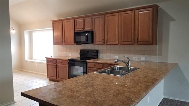 Updated 4 bedroom in Bar C Ranch area of Saginaw features 2 living areas, a formal dining space, a large open kitchen with breakfast bar and breakfast nook. Split bedroom layout with a large master suite which includes a bathroom with dual vanity, stand up shower, and a large walk in closet.