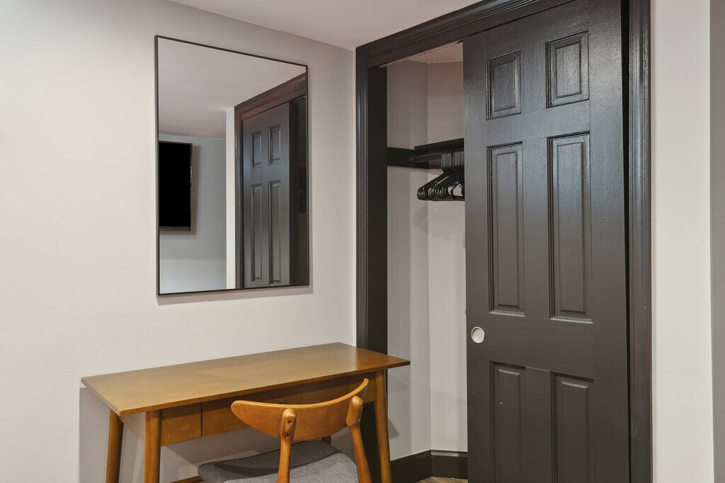 Feel at home in this historic Shaw Rowhouse located in the heart of Washington, DC. This bright and airy two-bedroom, one-bathroom apartment is just steps away from the Mt Vernon 7-St Metro Station, DC Convention Center, and all the vibrant restaurants and nightlife on K Street and downtown. Discover the ideal blend of history and modern comfort in this sophisticated DC rowhouse condo, designed specifically for extended stays. Nestled in the vibrant Shaw district, this home is perfect for students, nurses, interns, corporate travelers, and pet parents seeking a convenient and comfortable home away from home. Reciprocity Parking Permits for Temporary and Part-Time District Residents are available through the DC DMV for over 30-day bookings. Reservations less than 30 days may utilize the SpotHero app or the Colonial Parking garage by the Giant Supermarket. Shaw is a vibrant neighborhood known for its historic charm and modern vibrancy. Highlights include elegant row homes, Shaw Park for relaxation and community events, and the bustling 14th Street Corridor lined with boutique shops, cafes, bars, and restaurants. The area is also home to several theaters, galleries, and cultural institutions, contributing to its artistic and intellectual scene. A 10-minute walk to Mt Vernon 7-St Metro Station connects you to the Green and Yellow Lines, offering a quick ride downtown or to DCA airport. The home offers completely self check-in and self check-out, with instructions sent a few days before arrival and the night before departure. The apartment includes a desk to accommodate a work-from-home environment. Registration Number: 500724 [SI]