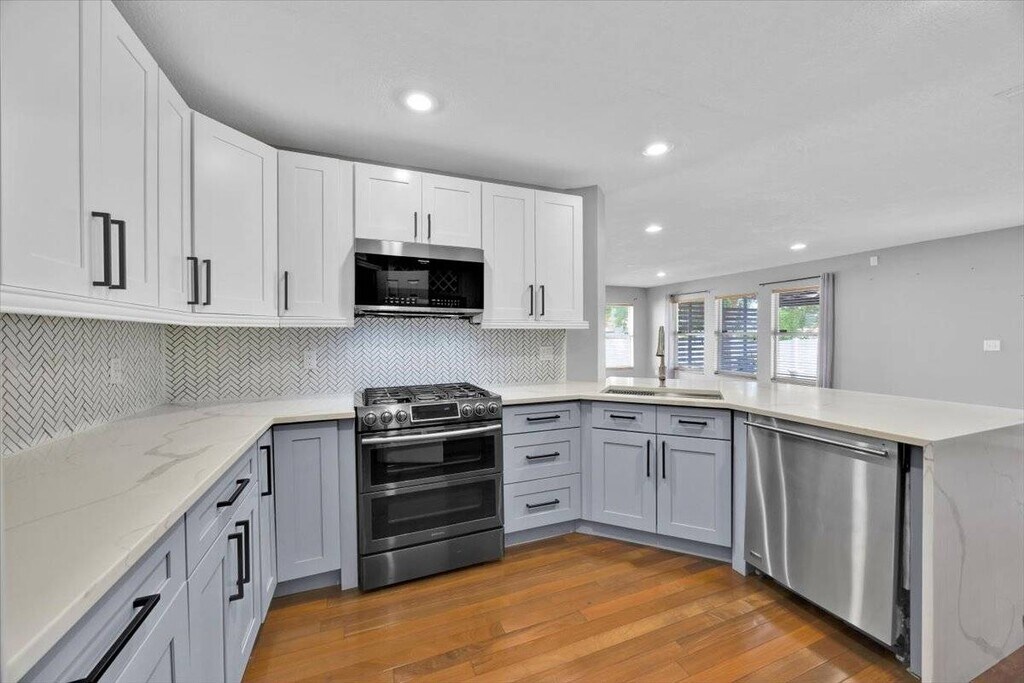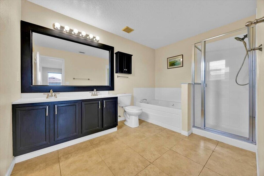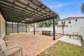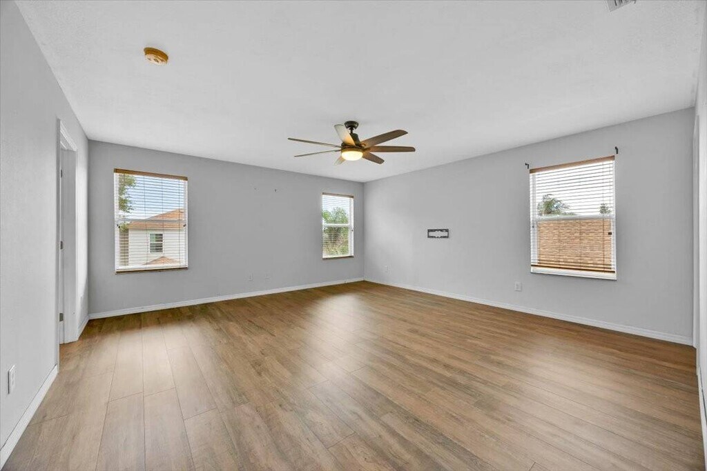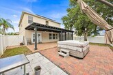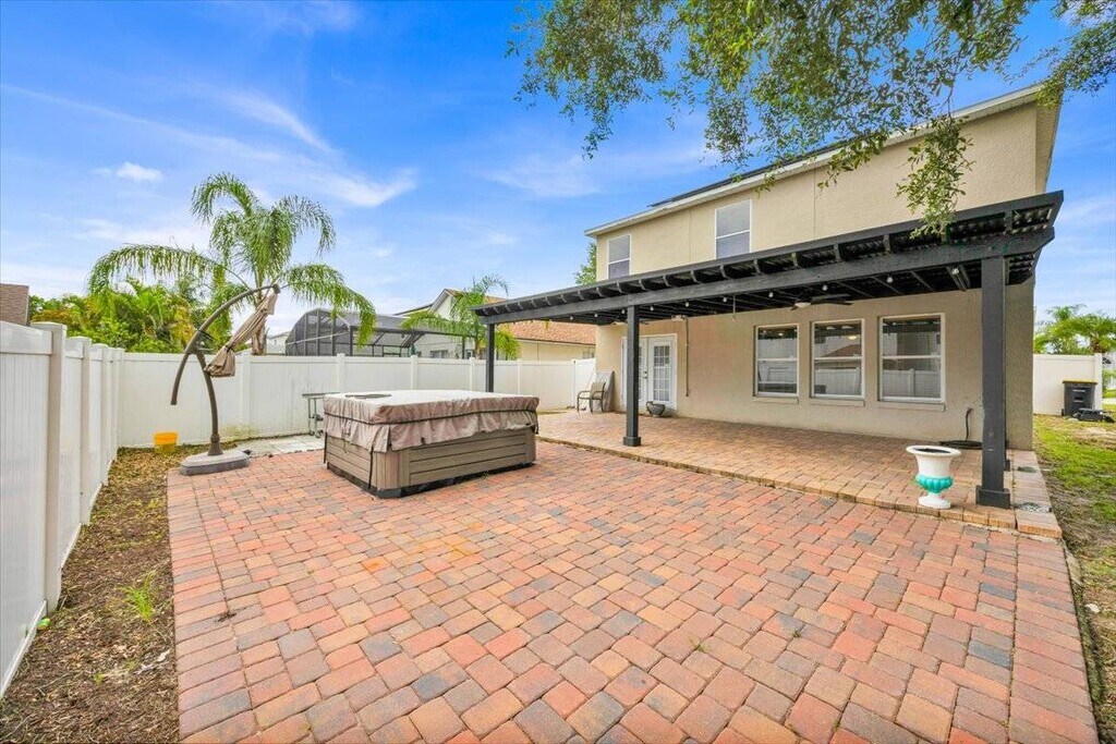 Gorgeous 3-bedroom home ready for move-in. This stunning property is located on a corner lot, and it is fully fenced for privacy. Inside, you are going to love the open feel of the layout with ample spaces for a formal living room, a family room, and a dining area. The first level and the stairs have real wood flooring. The recently remodeled kitchen will take your breath away with quartz countertops and brand-new appliances. The kitchen is fully stocked with a Range, Dishwasher, Refrigerator, and Microwave. Plenty of extra storage in your Kitchen pantry and extra eat-in space in the counter. Then head over to the French doors to your outdoor oasis. Enjoy the sunny Florida weather while soaking up the sun in your private Jacuzzi, or watch a movie on the screen & projector. The options at endless, making the perfect home for entertaining friends and family. Upstairs includes an open loft that can be used as an office, game room, or just a second living area. There are 2 additional bedrooms and bathroom #2 located on the 2nd floor alongside the primary bedroom. The master bedroom is very spacious and the primary bathroom comes with double sinks, and a separate shower & garden tub. You have to come see how large the walk-in closet is. Most rooms already include your TV mounts, plus it comes with a full-size washer & dryer. Not only are the appliances included, but this property includes Solar Panels, so say goodbye to high electric bills. The rental fee includes a Tenant's Benefit package that includes your A/C Filters delivered to your door, pest control on demand, renter's insurance, Identity Theft protection, among a few other benefits. At just minutes from Hwy 27, 6 miles to Hwy 192, and less than 3 miles to I4, you will be at your final destination in no time. Do not let this one pass you by and come see this property today!
