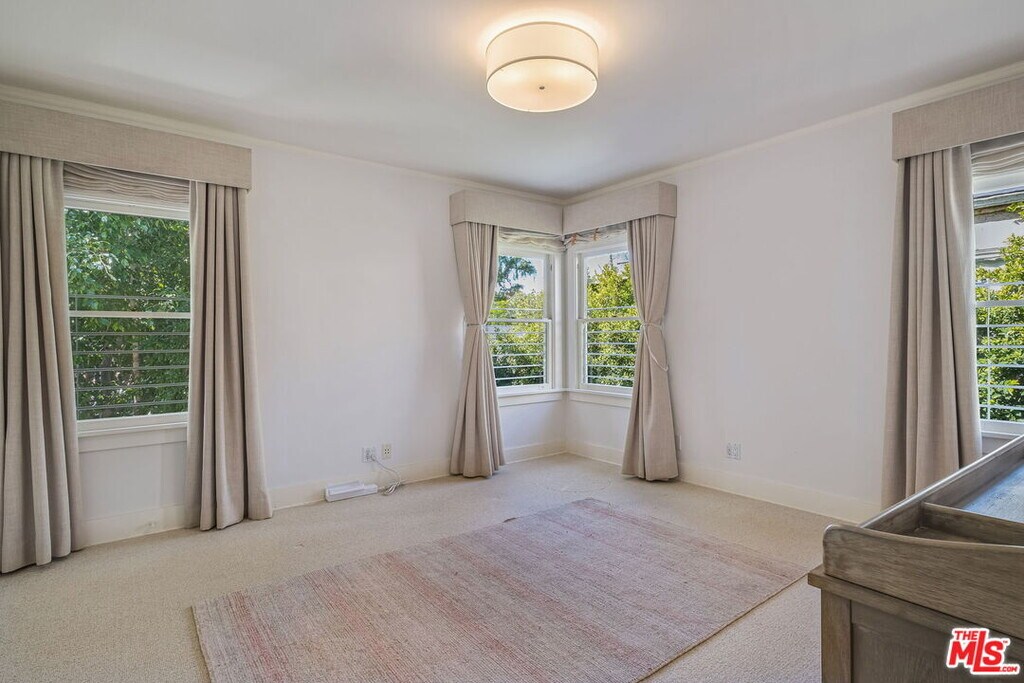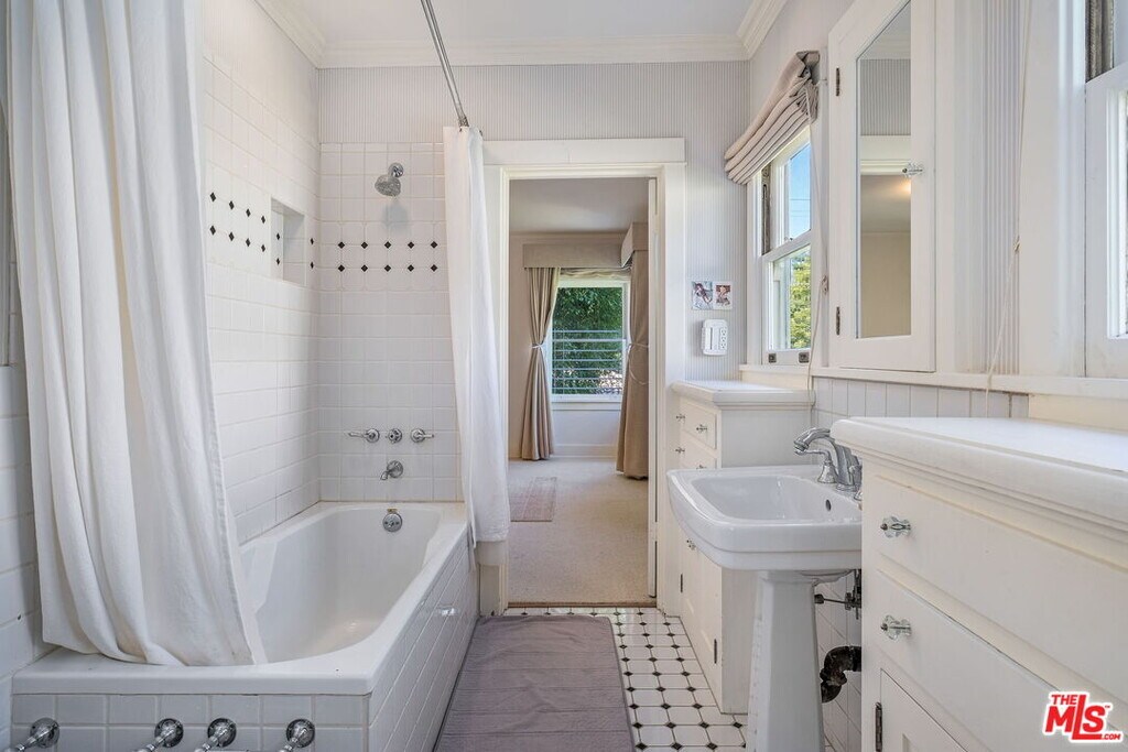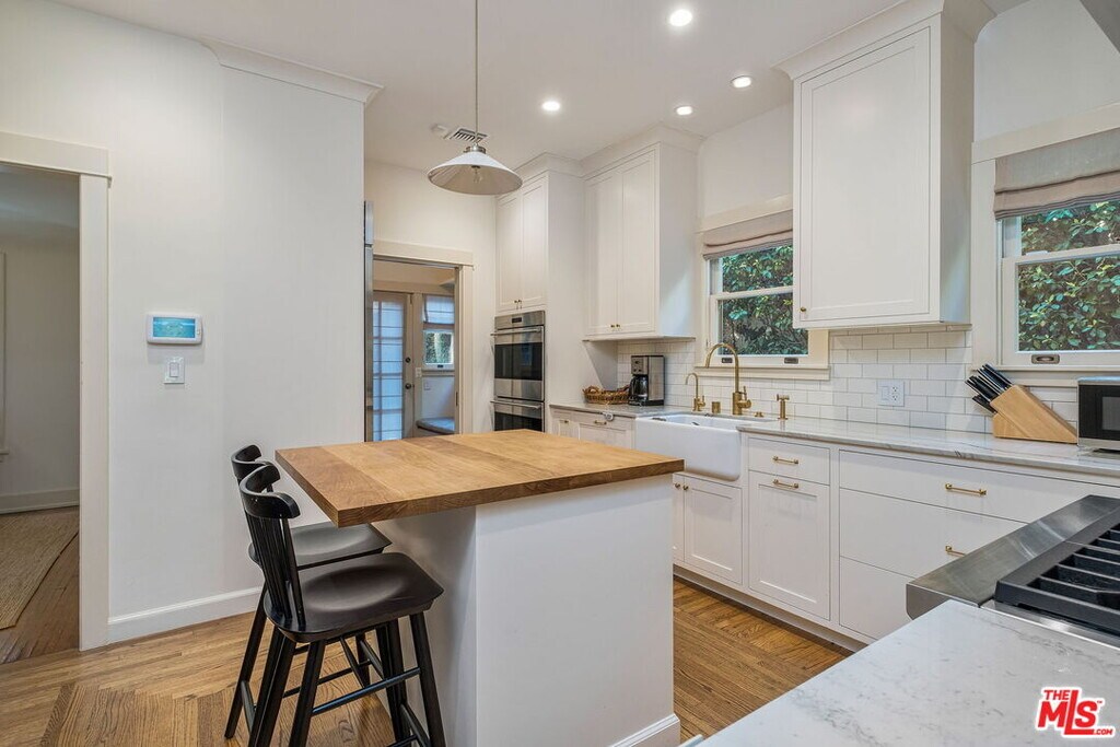 Secluded behind lush greenery and a romantic gate awaits this stunning 1920s Spanish dream. Situated in Hancock Park, the home is located just moments from the Wilshire Country Club, local shops, restaurants and more. An inviting living room has beautiful crown molding details, oversized windows, and brick fireplace. Light and bright, the kitchen features a butcher-block center island, farmhouse sink, top-of-the-line appliances, and elegant white cabinetry. The luxurious and spacious primary includes grand windows for an abundance of natural light, a walk-in closet with built-ins, and a marble bath with sleek wood accents, glass shower, soaker tub, and dual-sink vanity. Enjoy a sense of permanent summer vacation in a tropical locale from the resort-like yard, enveloped by mature palms with a sparkling pool and spa, fire pit, and pergola. Additional amenities include guest rooms, bonus room/den for playroom or office, detached guest house, a formal dining room, and more. This Hancock Park gem is truly a rare offering. MLS# 25573981
