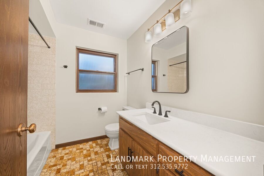 Welcome to this stunning 3-bedroom, 2-bathroom home located in the charming town of Lemont, IL. This recently renovated gem boasts a plethora of modern amenities and features that are sure to impress. The kitchen is a chef's dream with its granite counters, stainless steel appliances, hardwood cabinets, and a skylight that bathes the room in natural light. The living and family rooms are spacious and inviting, featuring a cozy fireplace with gas logs. High ceilings and large windows throughout the home create an open, airy atmosphere. The private patio, huge deck, and lush garden in the backyard offer ample outdoor space for entertaining or simply enjoying a peaceful afternoon. The home also includes central air conditioning, a furnace, and a gas water heater to ensure comfort in any season. Additional features include a soaking tub in the bathroom, carpet and vinyl flooring, ceiling fans, and an attached garage. The home also offers a convenient laundry unit and a basement for extra storage or living space. Please note, this property does not accommodate pets. Experience the perfect blend of comfort and style in this beautiful Lemont home. 650+ credit score, 3x the rent amount in net income, and no previous evictions required to apply. Due 48 hours upon approval, $3300 first months rent + $195 admin fee (annual charge) + $15 resident amenity fee (monthly charge). $1650 non refundable move in fee required. Backyard Fireplace Gas Furnace Gas Water Heater Huge Deck Large Windows Skylight Kitchen Ceiling