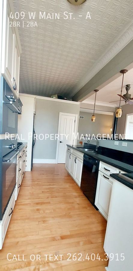 Available for earlier move in if desired. Please inquire. Welcome to this spacious upper apartment located in the heart of downtown Waukesha, WI. This 2-bedroom, 2-bathroom unit features a breakfast bar, hardwood floors, and high ceilings throughout. The kitchen boasts granite counters, a dishwasher, microwave, separate oven & cooktop/range top. Enjoy meals in the dining room or relax in the living room with a cozy fireplace. The master bath offers added convenience, while the private entry ensures privacy. Snow removal included. Cable ready for your entertainment needs, this apartment also includes a ceiling fan and washer/dryer for added comfort. With a one-year lease, this apartment is perfect for those seeking a convenient and comfortable living space in downtown Waukesha. Tenant is responsible to contacting the City of Waukesha for a monthly parking pass/es, in the public parking lot #4, there is no off street parking available. Schedule a tour today and experience the charm of downtown living in Waukesha! No Utilities Included