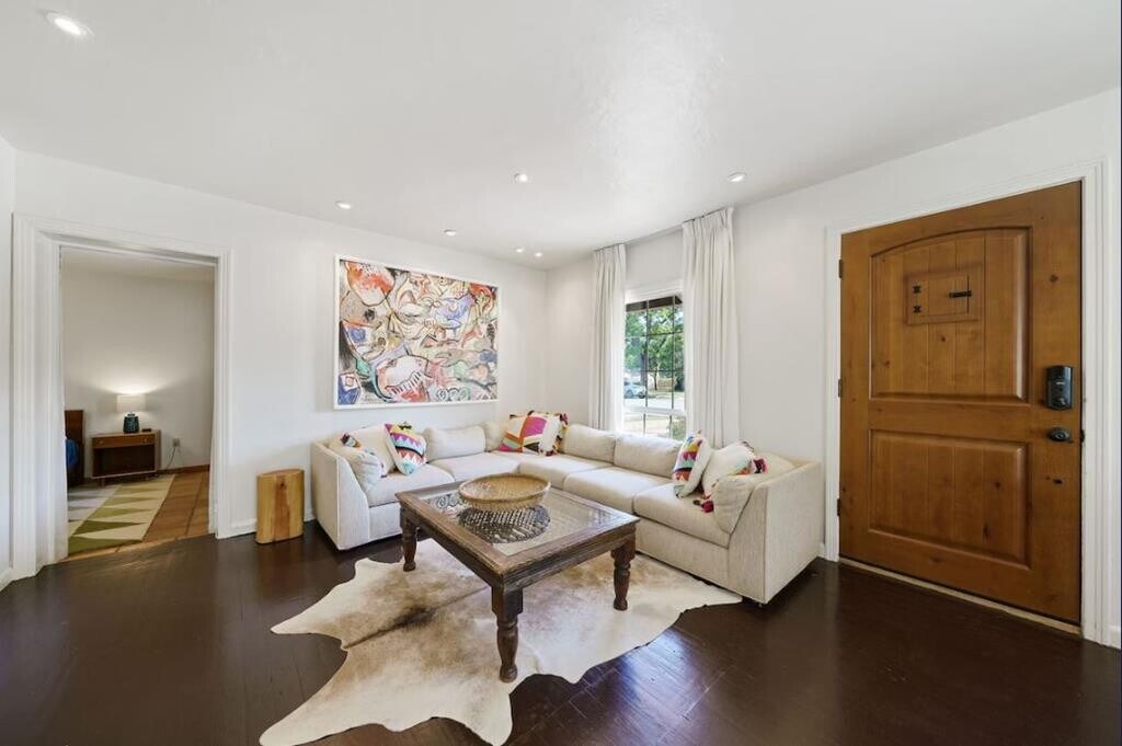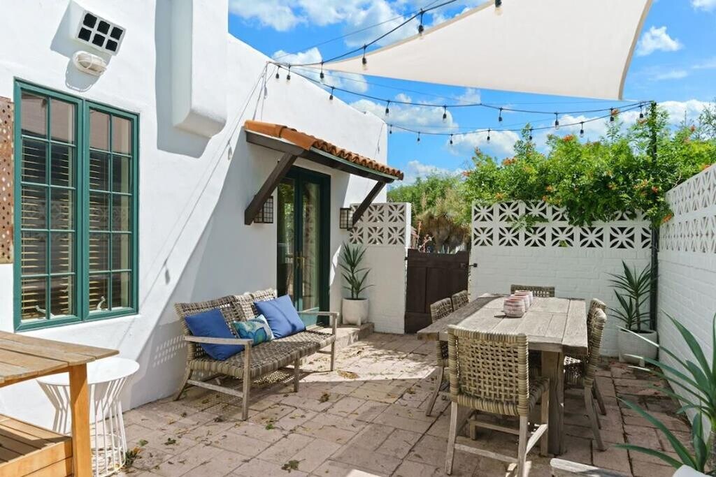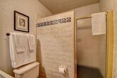 Spanish-style casita for lease in a central Kerrville location within the Starkey School District. This fully furnished home blends charm & practicality, featuring Mexican Talavera tile accents, clay roof touches, original wood flooring, and a terracotta brick walkway leading to the welcoming front entry. Living area offers floor-to-ceiling windows allowing natural light in, while the kitchen includes everyday essentials along w/ a cozy breakfast nook. The primary bedroom is comfortably sized, and the first bath offers a walk-in shower with glass block detail and an in-home laundry closet. The second bedroom may function as a den, office, or media room, with double doors opening to the backyard for easy indoor-outdoor flow. A second bath featuring Talavera tile and a walk-in shower adds additional convenience for guests or flexible living arrangements. Outdoor spaces include an open-air side patio ideal for morning coffee or evening relaxation, along with a fenced backyard shaded by mature trees. On-site parking is available, and the home offers quick access to parks, dining, and downtown amenities. Fully furnished. Seeking a 6–12 month lease. No pets and no smoking. Owners LREBs.