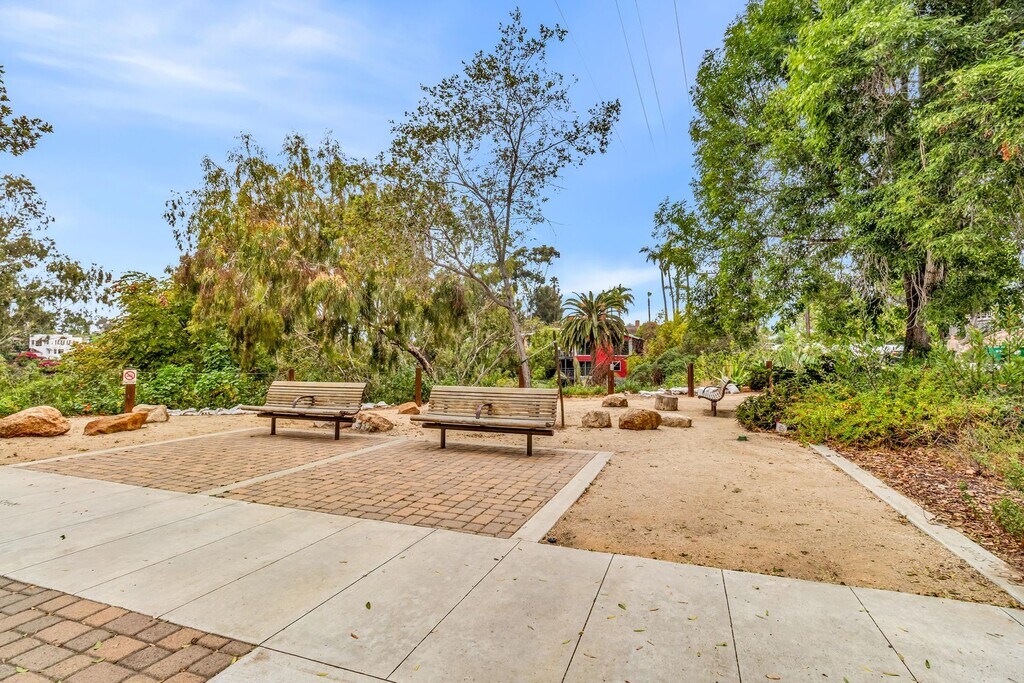 Incredible jewel in the heart of San Diegos best neighborhood - Mission Hills! This one bedroom, one- and one-half bathroom has a balcony overlooking a mini-park and trailhead to the Mission Hills canyon trail. The complex is quant and safe with a front gate and only 10 total units. Large den off the kitchen provides a private space away from main living room, perfect for a home office or separate dining area. Overhead lighting. Naturally cool unit with ceiling fans and a cross breeze throughout. Walking distance to many charming stores and restaurants and ½ mile drive to 2 grocery stores. Return home to your dedicated parking spot and utilize a private storage locker outside the front entrance. Bright kitchen with windows on two sides, dishwasher, stainless Steel stove, gas range and newer refrigerator. Full size in-unit washer and dryer. Laminate flooring throughout the with carpet in the bedroom. Pets allowed under 20lbs (2 max) $35/month pet rent ($55 for two) Credit score 775 and income 2.5x rental amount. Money Property Inc. DRE# 02067602 Apply online and please note that the application fee is non-refundable.