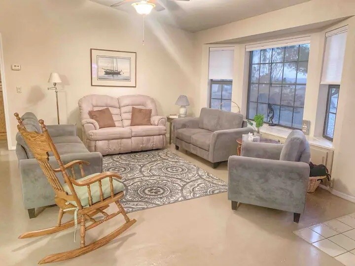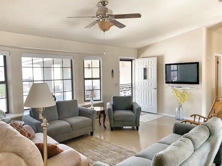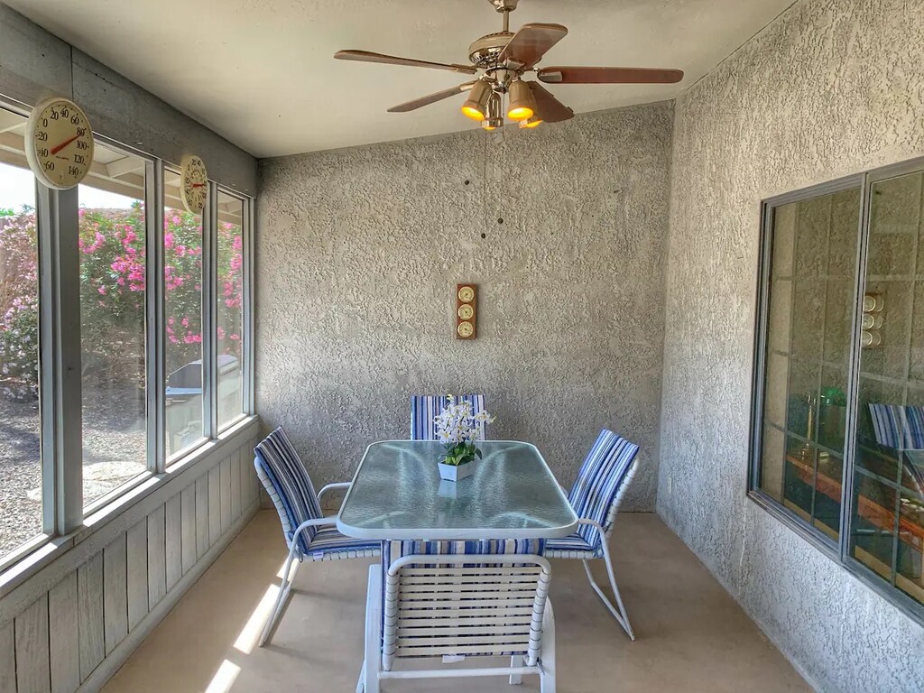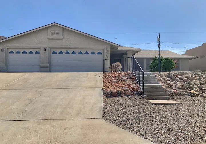 You have officially discovered the ultimate desert oasis house. Your whole group will enjoy easy access to everything from this centrally located home. Quiet street, beautiful mountain/desert views all around, you will truly be one with nature in this backyard. Inside you have a stocked kitchen, plenty of seating for all (even a recliner loveseat), attached sunroom off the master bedroom with a seating area, an indoor/outdoor seating area off the kitchen, a large garage & a driveway for the boat LIVING SPACE: >Kitchen - full equipped, spacious, breakfast nook with 6 person dinning table (special items include crockpot, vegetable steamer, instant hot water faucet, keurig and drip coffee maker) >Living Room - TV: Netflix, Roku, Disney+, Amazon Prime, and internet included. Couch and loveseat >Full Bathroom - bath tub/shower, toilet, sink >Laundry - washer and dryer. We provide laundry supplies >Desk and printer BEDROOMS: >Master Bedroom - king bed, TV: Netflix, Roku, Disney+, Amazon Prime, attached sunroom with 2 seater table >Master Bathroom - Walk in shower that converts to a jacuzzi tub (wheelchair accessible) >Bedroom 2 - king bed, TV: Netflix, Roku, Disney+, Amazon Prime >Bedroom 3 - full bed, twin bed, TV: Netflix, Roku, Disney+, Amazon Prime OUTDOOR SPACE: >BBQ grill >Sun room (enclosed) with 6 seater table >Scenic lake and mountain views >Fire pit (we have a large pile of wood, once runs out you will be asked to bring your own) >Access to trails/desert landscape/hiking/biking (if you bring a UTV the access is 1/2 a block away... if you bring a bike or want to hike/walk you can access from the backyard) >Corn hole! EXTERIOR: >Parking: driveway, side driveway for boats/toys, garage >Garage faucet, water softening system >>>Note: Steep Driveway< NEIGHBORHOOD: >Minutes from grocery stores, shops, restaurants >Quiet residential street >Neighbors on one side of the home >Beautiful views all around Guests will have access to the full home We want your vacation rental experience to be memorable and convenient. Keeping a comfortable and clean property is what is most important to us. We will be available anytime via messenger to answer any questions or concerns. We take the approach of being hands off on the property unless needed - we want you to feel like you have the home all to yourself! Quiet street - backyard backs up to the desert - great spot for those that want to take their UTV on the dirt paths, Bikes, or hike! Car or Uber is best, be safe! **MUST BE 25+ YEARS OLD TO RENT THIS HOME*** >No parties >No events >No smoking inside >Quiet time after 10pm (includes loud voices and music) >No unauthorized guests other than those on the reservation $250 deposit is asked at time of booking and refunded at checkout upon inspection (holidays we may ask for $500) CAMERAS >Front doorbell - motion detected and recorded >Side yard/backyard camera - motion detected and recorded. Put in place for security reasons. $200 fine if tampered with Left Behind Items >$10 service charge added to shipping cost BBQ GRILL >We try to keep our BBQ propane tanks full, but we aren't always sure. If you have to go fill the tank, please send us the receipt so we can reimburse you SNOWBIRDS November to February $3000/month (includes cleaning fee and utilities) TPT#21448403 Vacation Rental Permit#041004 CREDIT CARD PROCESSING FEES Note: When making a reservation through our website or when using credit card payment there is a 4% credit card processing charge that is paid to Stripe (the credit card processing company). If AT ANY TIME there is a cancellation, the 4% charge is not refunded. DAMAGE PROTECTION The extra charge listed as “Waivo Insurance” on your reservation covers accidental damage in the home within a certain limit. If something happens or breaks during your stay please let us know immediately so we can file a claim. Note: This amount only covers a 10 day or less stay. If you are staying longer than 10 days we will request the difference in amount for coverage.