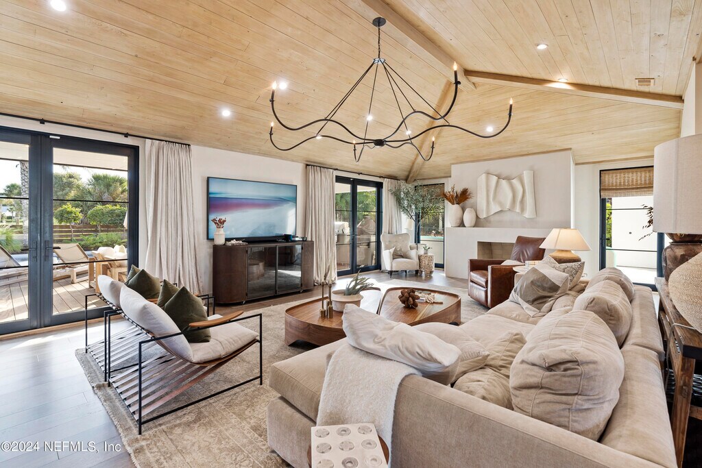 Come live the good life! Welcome home to this STUNNING contemporary 5-bedroom and 4 bathroom FURNISHED home that is located only two blocks from the ocean and minutes to The Ponte Vedra Inn & Club. This home sits on an oversized lot,walk out your back gate to the 14-hole on the Ponte Vedra Club Ocean Course. Be swept away by all the designer finishes,including Subzero and Wolf kitchen appliances,8 inch driftwood floors,designer tile,Oak ceilings in Living area and Master Bedroom,Plaster walls in all main areas and Master Bedroom,Custom linen drapes in every room along with natural woven shades,designer light fixtures in every room and much more! 2 car garage! Optionally a new ac/ garage also available MLS# 2010829