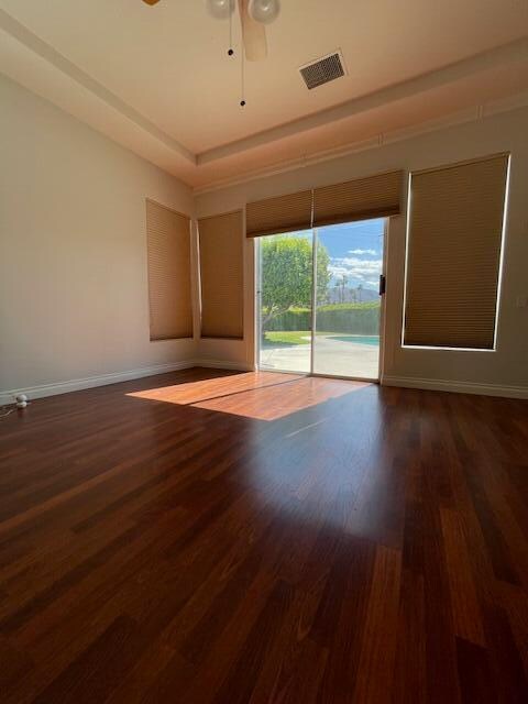 Gorgeous pool home in prime Palm Desert Location - La Paloma community. Welcome to your dream home in the heart of Palm Desert! Nestled in the quiet and desirable neighborhood,this stunning and spacious 3 bedroom plus den,3-bathroom single family home offers the perfect blend of luxury,comfort and convenience - all with no HOA restrictions. Step inside and be greeted by a bright and open floor plan featuring: a large living room with high ceilings and plenty of natural light. A modern,fully equipped kitchen and ample cabinet space. A cozy dining area that opens directly to the backyard. Three generously sized bedrooms,including a private master suite which has a sliding door leading to the spacious backyard. Outdoor living is a highlight of this property,with a private swimming pool,spacious patio and beautifully landscaped backyard - perfect for entertaining and relaxing year-round. Don't miss this rare opportunity to lease this home!