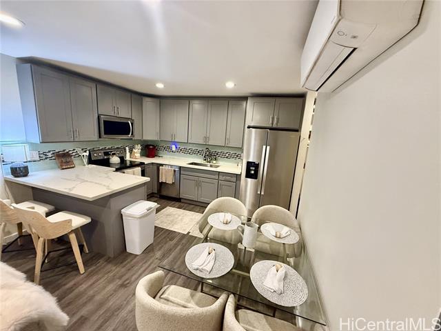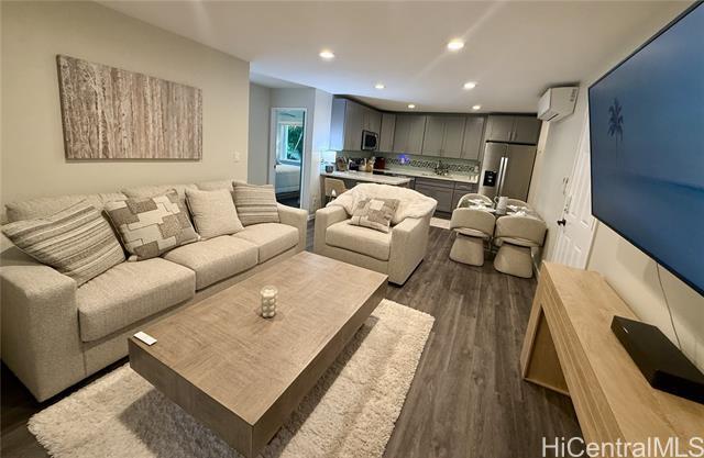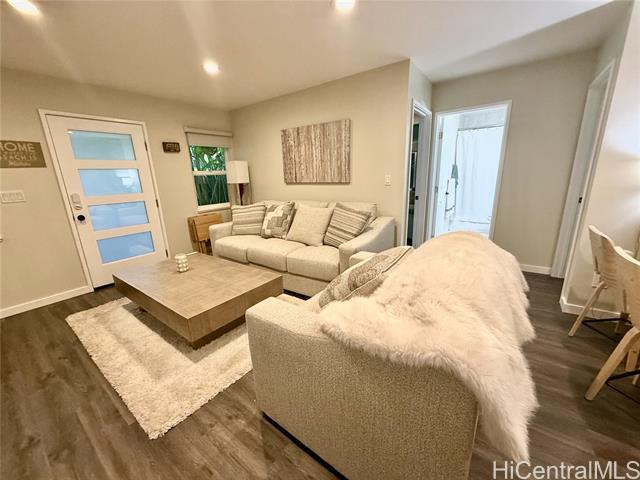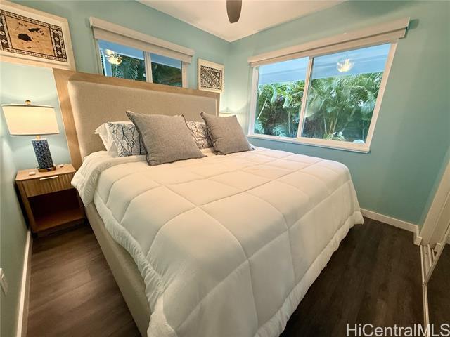 Come home to Waimanalo, known for its stunning, miles-long white sand beach, turquoise waters, and the backdrop of the Koolau Mountains. This two unit property is gated, fully enclosed. It sits on 8300 sq ft lot, walking distance to Waimanalo Beach, Kalapawai Market & Bellows AF Base. This elegant FULLY FURNISHED 2 Bed & 1 Bath sits on the first floor of this stunning 2 Unit Property. Lush and professionally maintained yard has whatever you are looking for. Relax with out door seating around the fire pit or dine outside while listening to the ocean waves each night. Monthly rent is $4,500. All Utilities Included. ($300.00 Cap on Electric monthly) **Please note upper unit is tenant occupied. Must schedule all showings with Property Manager** Cassandra Di Iorio, ,
