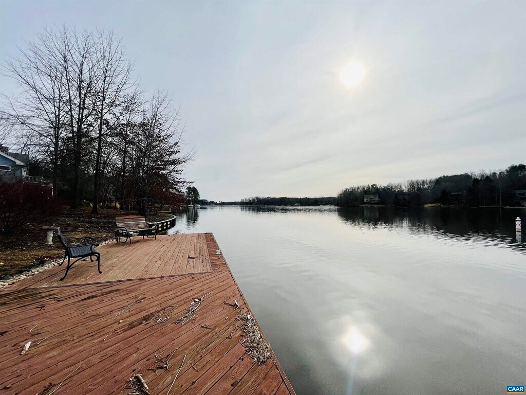 Welcome to waterfront living at Lake Monticello, VA! This place offers a unique and serene living experience. The property is situated along the shores of Lake Monticello, providing direct access to the water. Residents enjoy stunning views of the lake from various vantage points on the property. It comes with a private dock allowing tenants to easily dock a boat, launch kayaks, or simply relax by the water. It has outdoor living spaces, a deck, and patio that overlook the lake. Beautiful spaces for enjoying the beautiful scenery and entertaining guests. Includes spacious living areas, open concept kitchen, 3bds/3bths with large windows to maximize views of the lake. Washer and dryer included. You can enjoy various water activities right from your doorstep, including boating, fishing, kayaking, and swimming on 5 public beaches. Tenants also have access to community amenities such as tennis courts, golf course, and a swimming pool.