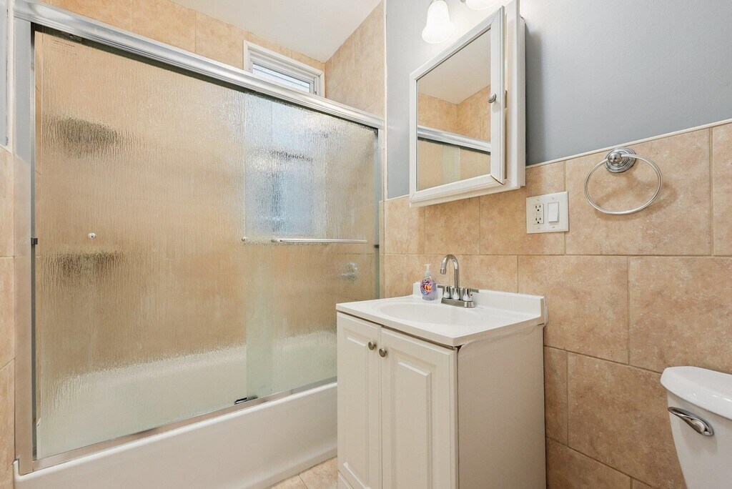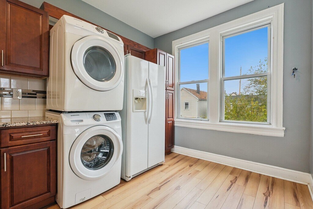 Fantastic and bright 3-Bedroom home with yard and parking available now! Just one flight up from the entrance, it features a large modern kitchen with stone countertops, many cabinets, all main appliances, and even space for breakfast/dining table; very large main bedroom with alcove, living room, 2 additional bedrooms, and a nice bathroom with built-in shower door. In-unit washer & dryer included (no more trips to the basement or laundromat!), hardwood floors, central AC/Heat, and updated recessed lights throughout. The large yard is shared and ready for use and decoration. Located in the best part of Bayonne, just a few blocks away from 45th Street Light Rail, nearby cafes/restaurants, shops, park, and easy access to major highways in/out of town.