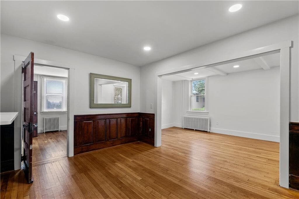 Newly Renovated 2-Bedroom – Available November 1 (or Sooner) in Prime Newport Location. This bright and spacious first-floor apartment has just been fully renovated and is ready for its next tenant. Located in a quiet and popular residential neighborhood,this 2-bedroom,1-bath unit features a brand-new kitchen with quartz countertops,stainless steel appliances including a dishwasher,modern tile backsplash,and new hardwood flooring that ties into the original floors throughout. The open-concept layout includes a quartz peninsula with bar seating,all new electrical,fresh paint in a light,modern palette,and new window blinds throughout. Enjoy access to basement laundry,a shared backyard,and close proximity to the Naval War College and downtown Newport. Offered as a yearly,unfurnished lease. Tenants pay utilities. Trash pickup and yard care included. Landlord will review December applications as they come.