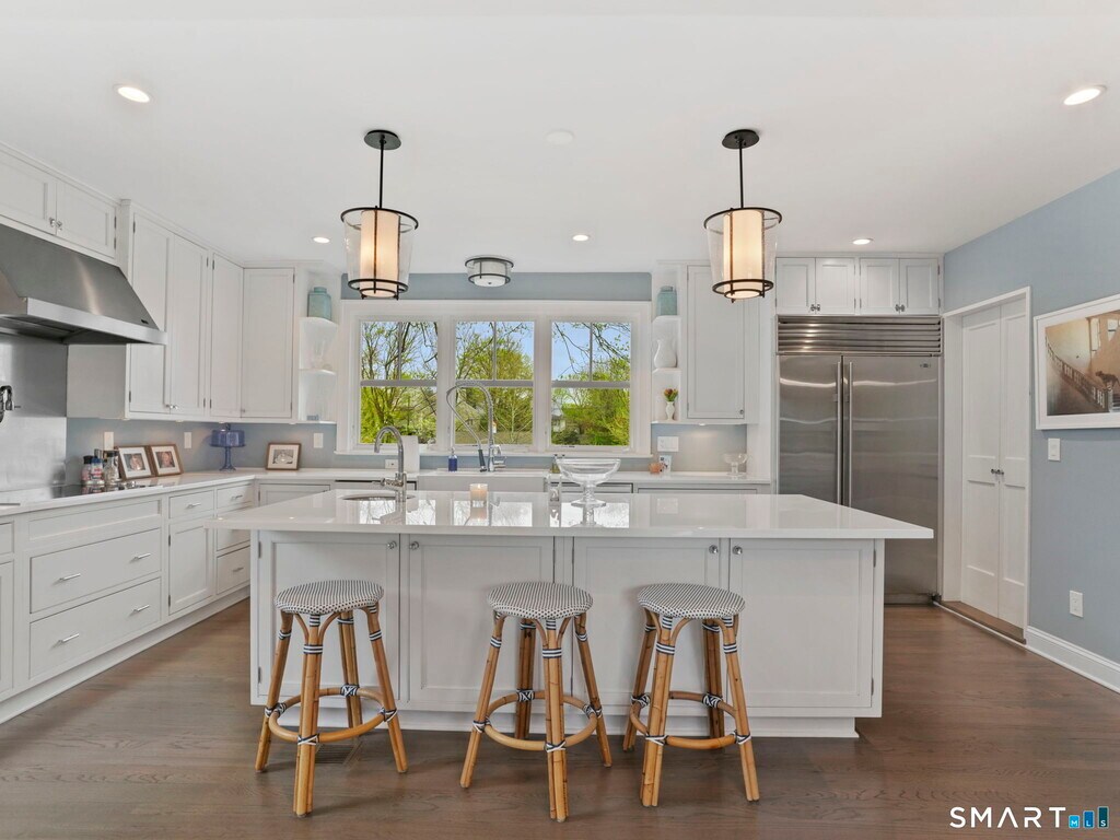 Call for Availability - Beautifully renovated rental in the heart of Cos Cob offering the perfect blend of modern style and comfortable living. This home features an open floor plan with soaring ceilings and abundant natural light throughout. The spacious kitchen is a true centerpiece, complete with a large island and seamless flow into the dining area, which opens directly to a patio with a gas grill, ideal for indoor-outdoor entertaining. The inviting family room showcases vaulted ceilings, creating a bright and airy gathering space. The luxurious primary suite offers a private retreat with a beautifully appointed bathroom. Upstairs, you'll find an office, two additional bedrooms and a full bath, providing plenty of space for family or guests. The versatile lower level includes an additional bedroom or office, along with a large bedroom or recreation room featuring a brand-new full bathroom and walk-out access. Set on a professionally landscaped property, the home includes an attached oversized garage and a fenced-in backyard that backs directly onto Pomerance Park, offering privacy and scenic green space. A rare rental opportunity combining space, style, and an exceptional location. MLS# 24169371