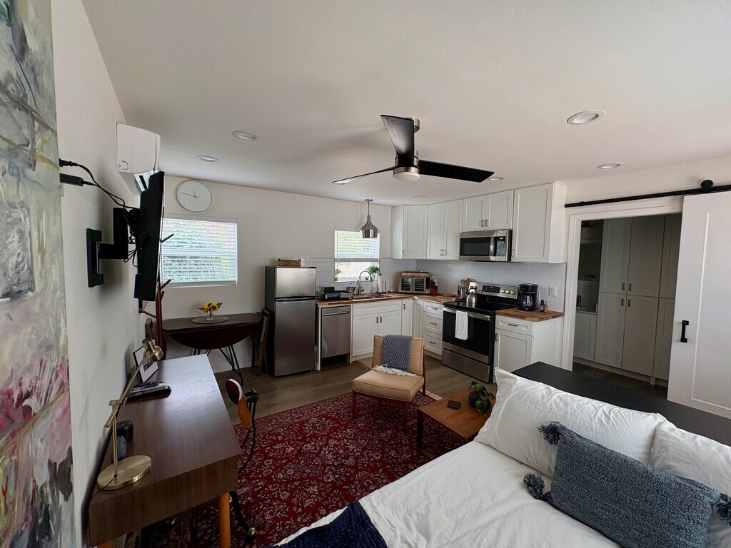 Step into your own peaceful sanctuary in Sacramento’s Tahoe Park. This detached 320 sq ft studio ADU (built in 2023) is thoughtfully furnished and designed for comfort. You’ll enjoy your own gated entrance, private mailbox, and complete separation from the main house. Inside, you’ll find a full kitchen, in-unit washer/dryer, smart TV, and cozy furnishings. All utilities and high-speed WiFi are included. Outside, you’ll enjoy a private seating area and Traeger grill. The yard is shared with the main house, but you’ll have your own gated entry and plenty of privacy. Located on a quiet court, this studio is just minutes from UC Davis Medical Center, Sutter Medical Center, and Mercy General Hospital, as well as Midtown cafés and restaurants — making it perfect for travel nurses, medical staff, or professionals seeking a quiet retreat. Lease Terms: Our lease is month-to-month for flexibility, but we ask for a minimum stay of 2 months. The home will be available January 5, 2026 (current tenant through December, allowing a few days for turnover). Fees: A $600 refundable security deposit is required at move-in. At the end of the lease, a $200 cleaning fee will be withheld from the deposit (with the balance refunded, assuming no damages). For approved pets, a $150 pet deposit also applies. Highlights: • Fully furnished studio with modern design • Private gated entrance + mailbox • Full kitchen with cookware & utensils • In-unit washer & dryer • Smart TV (Roku + Chromecast) • Private outdoor seating area + Traeger grill • Shared yard access • All utilities + WiFi included • Pets welcome (with deposit) • Flexible lease (minimum 2 months)