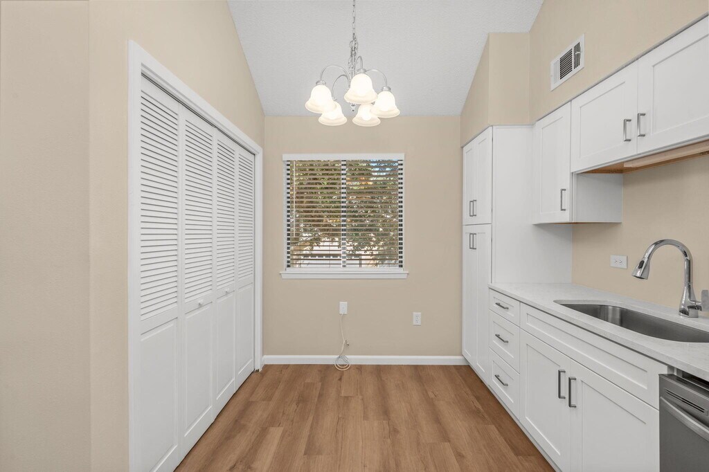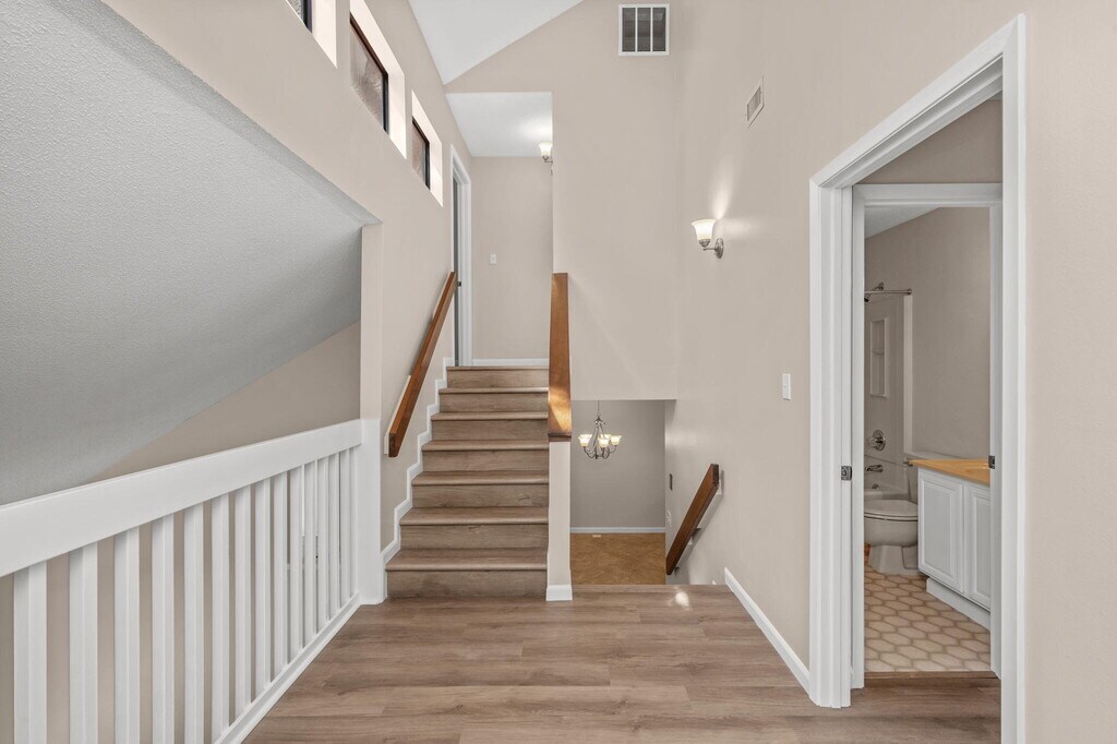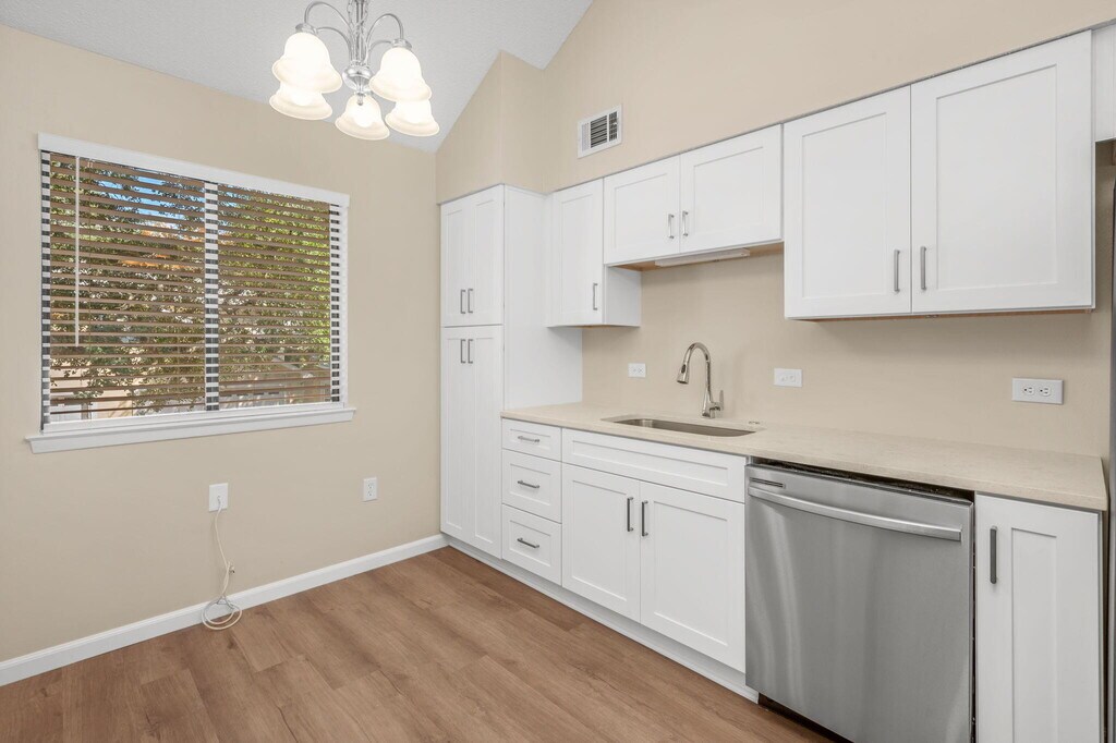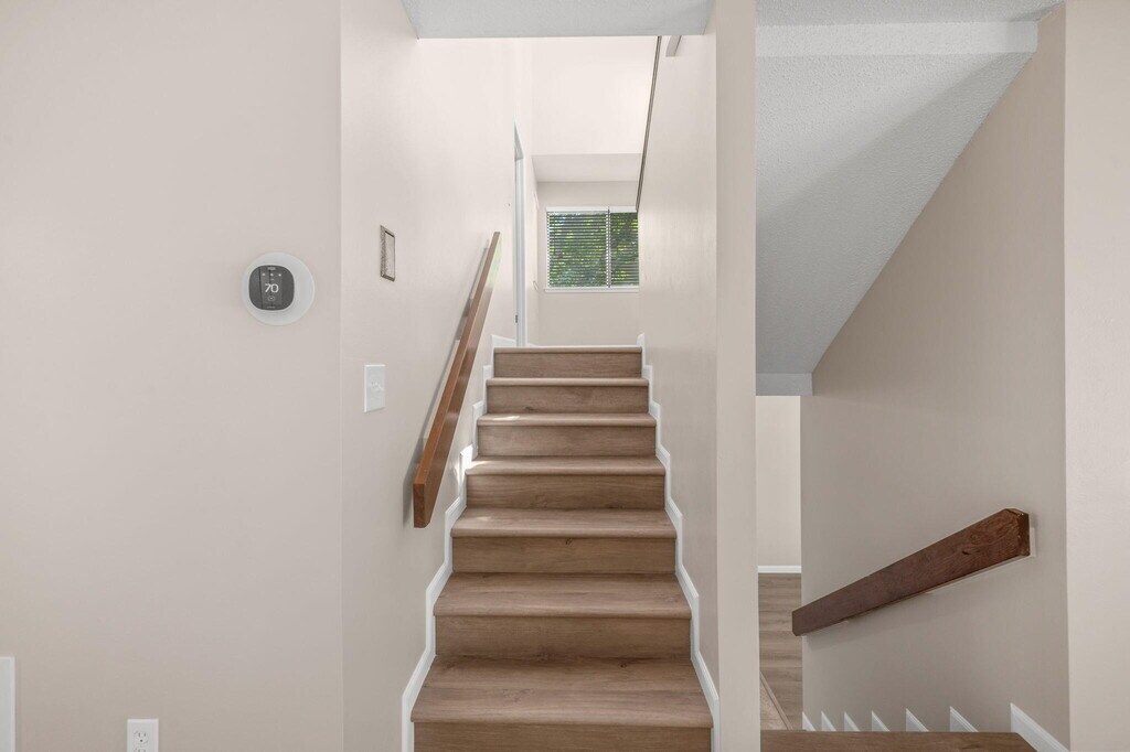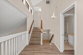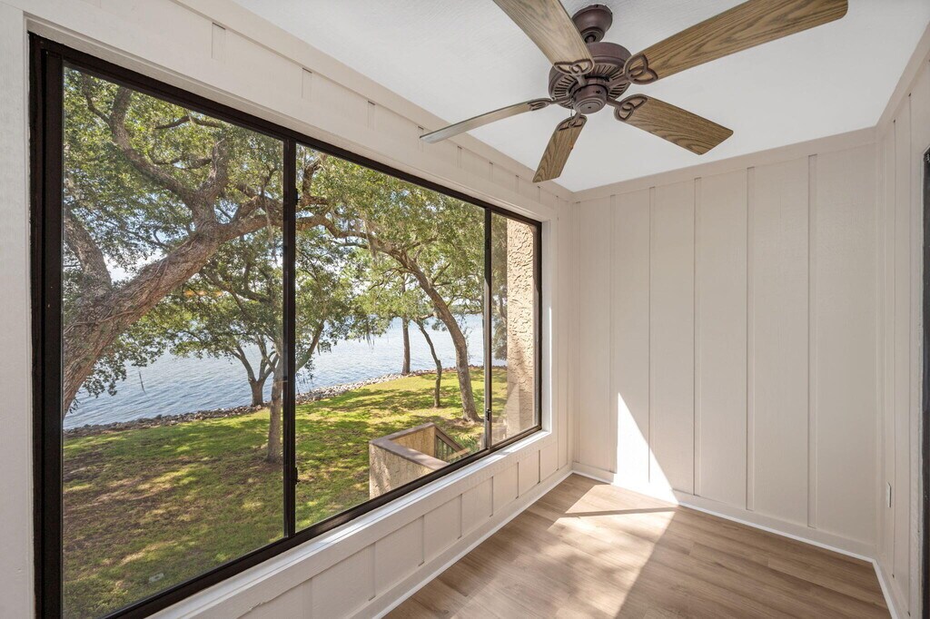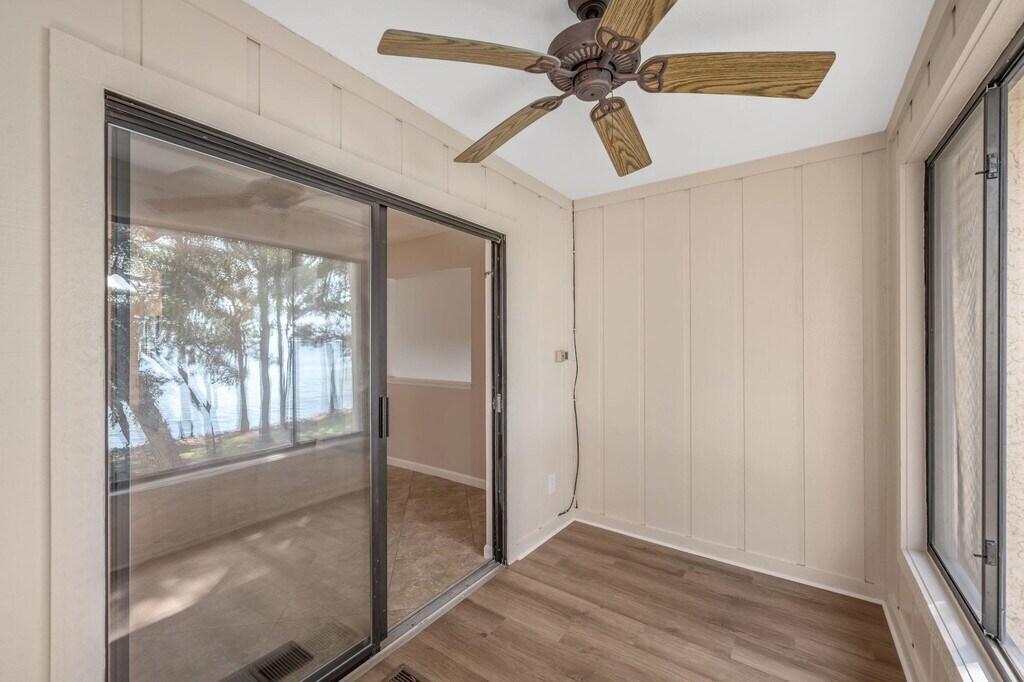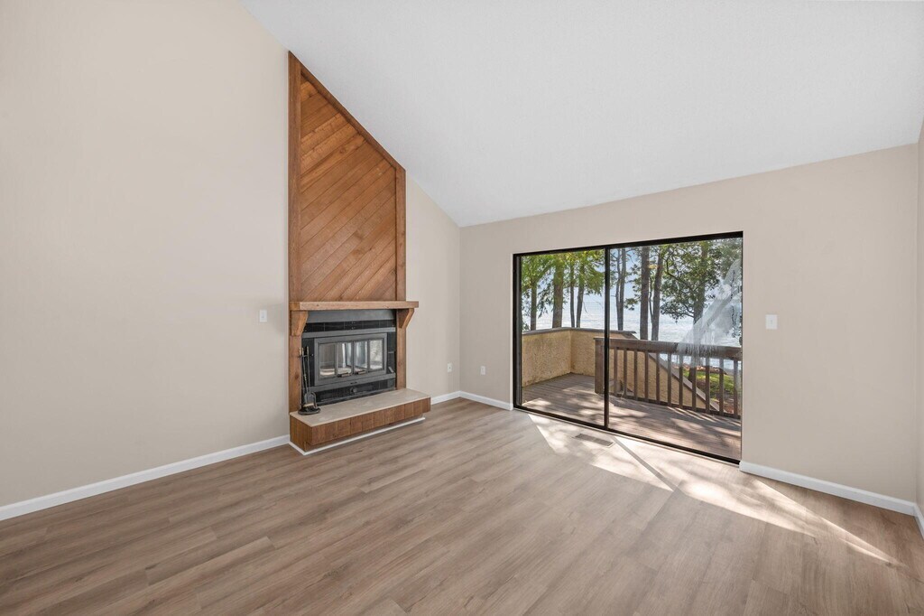 Enjoy stunning water views from all three levels of this beautifully updated 2-bedroom, 3-bath home. Featuring fresh paint, crisp trim, and luxury vinyl plank flooring throughout, this residence combines comfort and coastal style.The renovated kitchen offers stainless steel appliances and a bright, open feel perfect for entertaining. The spacious living area includes a wood-burning fireplace, soaring multi-level vaulted ceilings, and access to a screened-in patio overlooking the water. The primary suite boasts a vaulted ceiling, walk-in closet, dual sinks with an extra-long vanity, and a separate water closet with a walk-in shower enclosed in glass. A second bedroom and full bath with a shower-tub combo provide plenty of space for guests, while a full bath on the main level adds