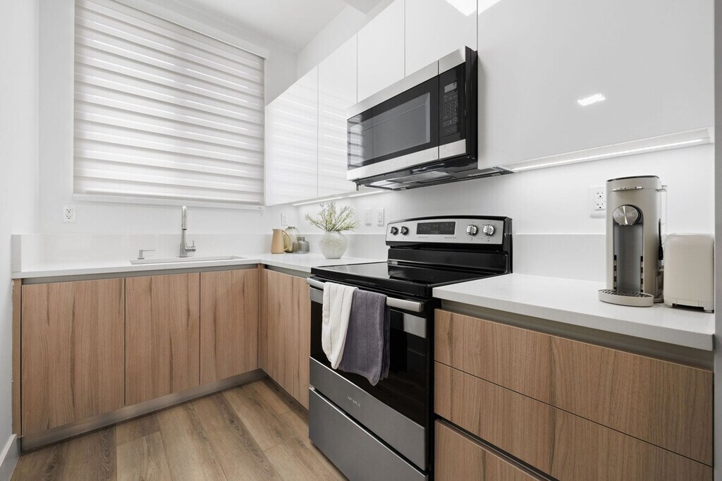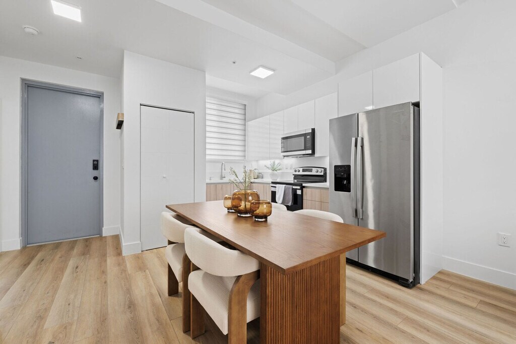 Feel at home in this newly built 2-bedroom, 2-bath apartment near Brickell, Downtown, hospitals, and Marlins Stadium. This apartment is on the second floor of a building without an elevator. Enjoy fully furnished interiors, a modern kitchen with stainless steel appliances, an in-unit washer/dryer, and high-speed Wi-Fi. The open living area invites you to relax in a Japanese-inspired retreat. Natural wood accents, indoor greenery, and uncluttered décor evoke calm elegance. A stacked washer/dryer and ironing station are discreetly tucked away for your convenience. Free street parking is available. Located in a peaceful neighborhood, this apartment is ideal for travel professionals seeking comfort and convenience in a vibrant area. It's 2 minutes to the nearest grocery, 5 minutes to hospitals, and a block away from Marlins Stadium. No smoking, no parties, and quiet hours are observed from 11 pm to 7 am. There is an exterior security camera on the entrance, but none inside the unit. All essential supplies you need to get settled down, cook, and clean are provided. [SI]