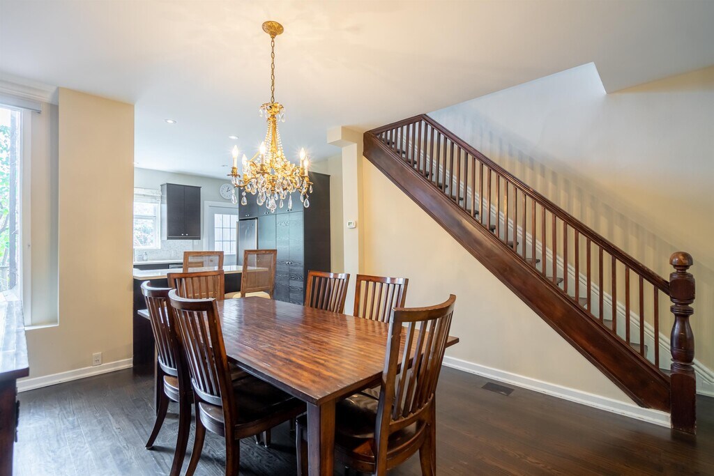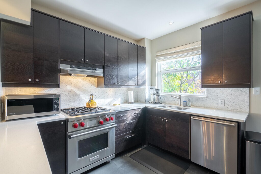 Fully furnished home in the heart of Seaton Village. South facing, stunning 3 Storey contemporary home. Open concept main floor with fireplace. Upscale kitchen quartz counters, stainless steel appliances, and wolf stove. Walkout to the deck from the kitchen. Second-floor office. Two full baths. Finished basement with rec room. Private master retreat with ensuite bath & fantastic south facing deck. Treelined, Quiet One-Way Street.