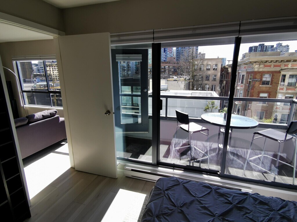 There is currently a 1 Bed 1 Bath Condo for rent with 585 sq ft listed at 410-1060 Alberni St. It is Available June 1, 2026.
