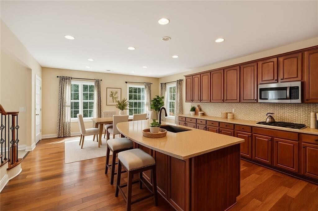Impressive 7-Bed,6-Bath Home in Great Sky Thundering Hills (Canton,GA) — 5,664 Sq Ft of Space & Elegance Discover this executive-style residence nestled in the prestigious Great Sky Thundering Hills neighborhood of Canton,perfectly combining luxurious comfort with convenience. This expansive 5,664 sq ft home is thoughtfully designed for seamless entertaining,working remotely,or hosting family and guests in style. Property Highlights & Features Spacious layout boasting 7 bedrooms and 6 full baths Finished walkout basement complete with kitchenette—perfect for entertaining Gourmet chef’s kitchen equipped with stainless steel appliances,granite counters,and generous cabinetry Open-concept living & dining spaces with hardwood floors Main-level guest suite for added privacy and convenience Primary suite retreat featuring spa-like bath and ample storage Private backyard with patio,plus a 2-car garage Quick access to I-575 and located in the revered Great Sky community that offers fantastic amenities,including a swim & tennis club,walking trails,and playgrounds. It is conveniently located less than 10 minutes from Downtown Canton,where you’ll find plenty of shopping,dining,and Northside Hospital. Plus,the new Cherokee High School is just outside the community! MLS ID 7755624