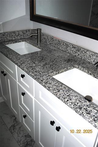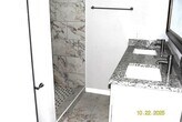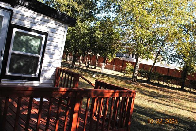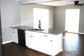 Fully updated with vinyl flooring in living areas and carpet in bedrooms. Open living area. Kitchen has black appliances including microware and refrigerator, quartz counters, breakfast bar. Utility room has built in sink and washer dryer. Master is split for privacy. Shower and double vanity with walk in closet. Other bedrooms have updated bathroom with shower. Ceiling fans throughout. Blinds in place. Colors are soft gray and whites. Oversized wood & chain link fenced yard. Small deck off master bedrooms. Near elementary and high school. Quick access to I 45 and I 20. Open field makes it feel like country but in an established residential area.