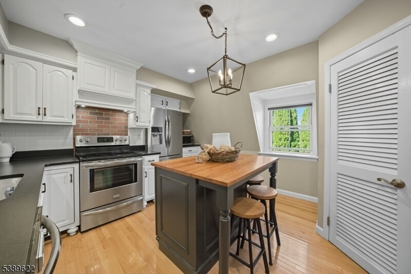 Welcome to 410 Cornelia Street, a beautifully maintained 1-bedroom, 1-bath apartment in the heart of charming Boonton. This immaculate home combines classic elegance with modern upgrades, offering a bright and inviting living space perfect for relaxation and entertaining. The living room features gleaming hardwood floors and large windows that fill the home with natural light. The stunning kitchen boasts stainless steel appliances, a butcher block island, and custom cabinetry that maximizes storage and style. The spacious bedroom provides a serene retreat with double closets and soft, natural tones, while the spotless bathroom showcases timeless subway tile, marble accents, and an upgraded vanity. Step outside to your private balcony, a captivating outdoor space ideal for morning coffee or gentle evening breezes, overlooking lush green surroundings. Additional highlights include off-street parking, abundant storage, and beautifully landscaped grounds that offer both privacy and tranquility. Located just moments from downtown Boonton's shops, dining, and train service, this rental blends convenience with refined comfort.