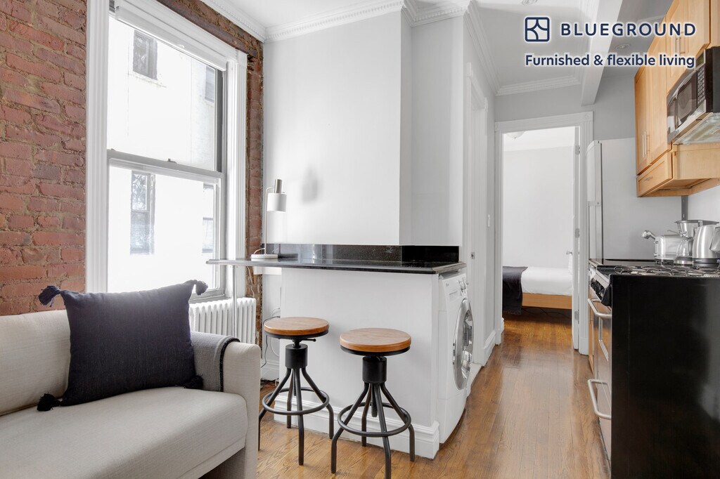 Discover the best of New York, with this one bedroom apartment in Ukrainian Village. It’ll be easy to simply show up and start living in this furnished apartment with its fully equipped kitchen, living room, and our dedicated, on-the-ground support. (ID #NYC722) The advertised rate of $4,290/month is the lowest available price, based on a 2 month(s) and 22 day(s) stay with a move-in date of November 1, 2025. If you’re looking for a 1-year stay, the rate is $4,660/month. Rates vary depending on the duration of stay, season, and other parameters. For exact pricing and additional pricing components, please visit our website and enter your desired move-in and move-out dates. The rate is applicable when billed upfront; it can be higher if billed in multiple payments. Brokers are welcome to reach out. Were you looking for an unfurnished lease? Try Blueground instead and upgrade from unfurnished to furnished living: - Furnished at rates comparable to unfurnished - No setup or furniture costs - save thousands - Move-in ready - save time, just bring your suitcase Designed with you in mind Gorgeous furniture, fully equipped kitchen, smart TV, and a premium wireless speaker are just a few of the amenities you’ll find inside this one bedroom apartment. Ideally located in New York, you’ll find a lot to love outside as well. When you’re ready to relax, you’ll be happy to discover every Blueground bedroom comes with superior quality mattresses, luxury linens, and cozy towels. We handle everything so you can simply show up and start living. This apartment also offers in-apartment laundry. Sleeping arrangements Double Bed, 55in/140cm Amenities Building amenities unique to this one bedroom apartment include an on-site: - Dryer - Washing machine - Pets allowed Arrival and ongoing support The entire apartment is yours to enjoy! Throughout your stay, you’ll have access to our Client Experience team through the Blueground App. You can schedule additional cleanings, submit maintenance requests, and view our neighborhood recommendations with just a few taps. We’ll share all details upon confirmation of your stay. Other things to note This Blueground apartment has flexible lease options, allowing you to book it for one month, a year, or more. Pets are welcome, though weight limits and breed restrictions apply and may incur fees. Please keep in mind that this is a walk up building. Brokes CYOF. We take great pride in ensuring every photo displayed is shot in our own units with our actual furnishings. That said, we regularly refresh our decor and furniture arrangement, which may differ from what’s pictured.