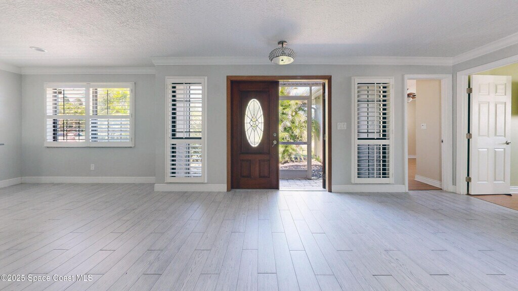 Welcome to this stunning coastal retreat located in one of Satellite Beach's most sought-after neighborhoods on Florida's Space Coast. This beautifully updated single-family home combines modern elegance with relaxed beachside living just minutes from the ocean. Step inside to an open,airy floor plan featuring a gourmet kitchen designed for entertaining,complete with an oversized island,sleek modern finishes,and high-end appliances. The spacious living and dining areas flow effortlessly into a bright bonus room/sunroom,perfect for an office,playroom,or cozy reading nook. The home offers three generous bedrooms and tastefully renovated bathrooms,providing comfort and style throughout. Outside,enjoy Florida living at its best with a screened-in pool and patio area,ideal for relaxing or hosting family and friends. Additional highlights include a paver driveway,two-car garage,and lush tropical landscaping that enhances the home's curb appeal.