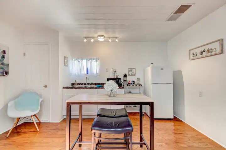 Property Id: 1394472 Nestled just three blocks south of the University of New Mexico, Studio 1-bedroom, 1-bathroom with private patio, casita invites you into a haven of comfort and convenience. Fully furnished with all bills - including water, electricity, and internet. The casita features a laundry room on the premises equipped with a washer and dryer for your convenience. A shared fenced-in backyard provides a delightful outdoor space to relax and enjoy the New Mexico weather. Off-street or designated on-street parking, our casita accommodates both options, ensuring you always have a convenient parking spot. Centrally situated in the UNM area, you're just a stone's throw away from the academic and cultural hub of the university. Explore the nearby neighborhoods of Nob Hill and East Downtown (EDO), known for their eclectic mix of shops, boutiques, and vibrant street life.