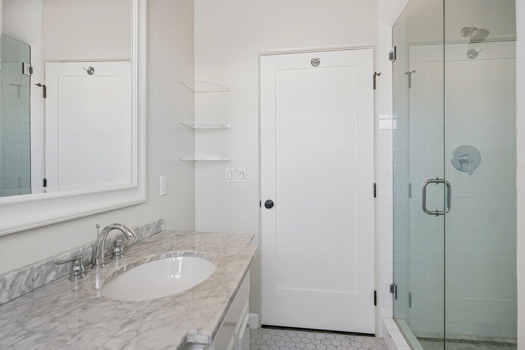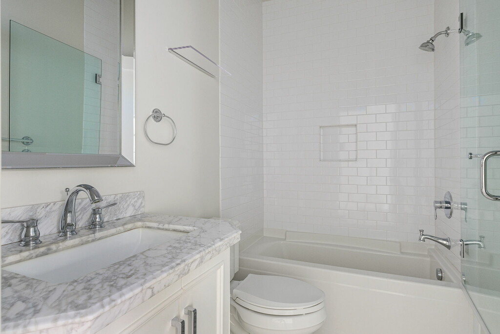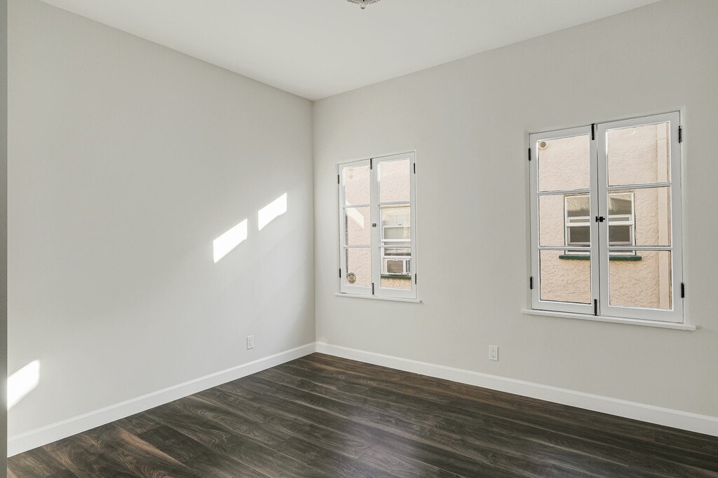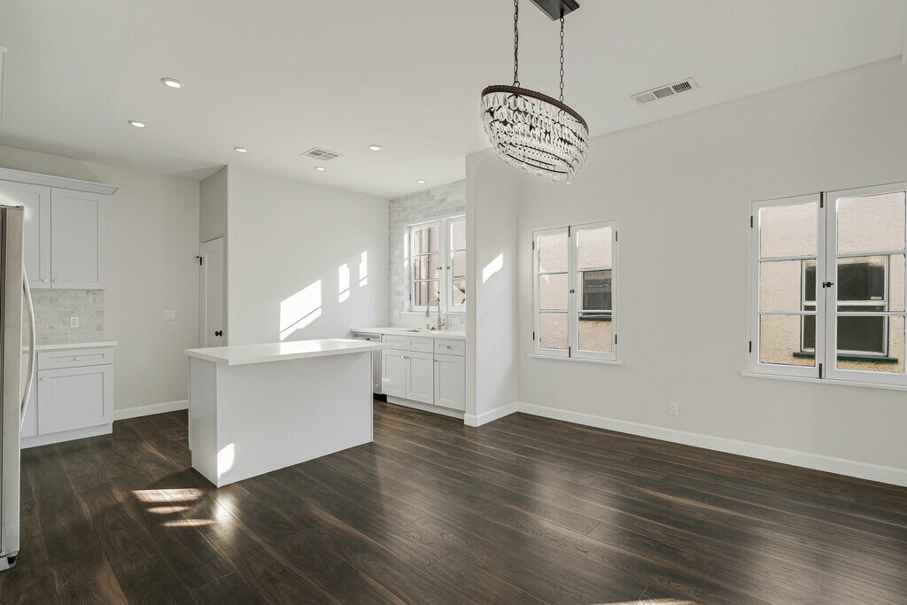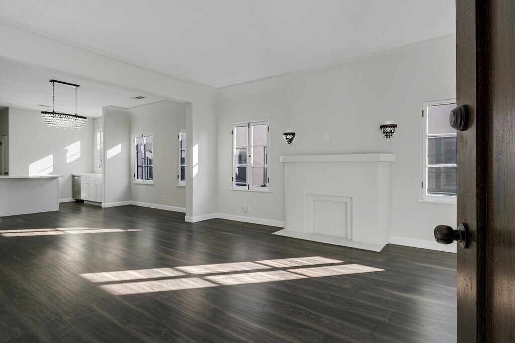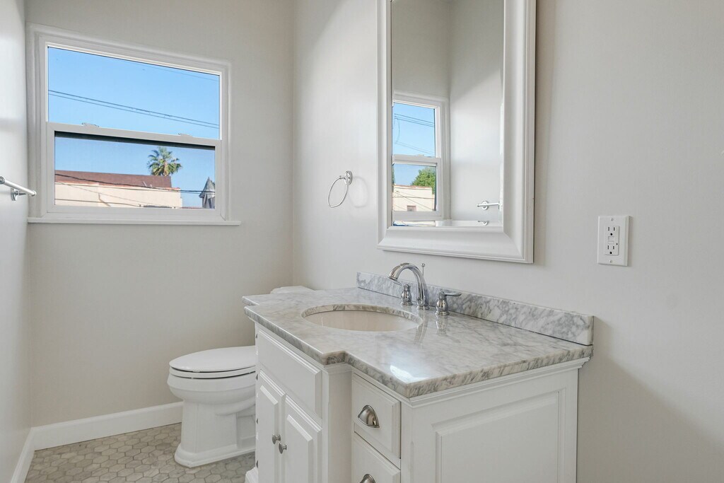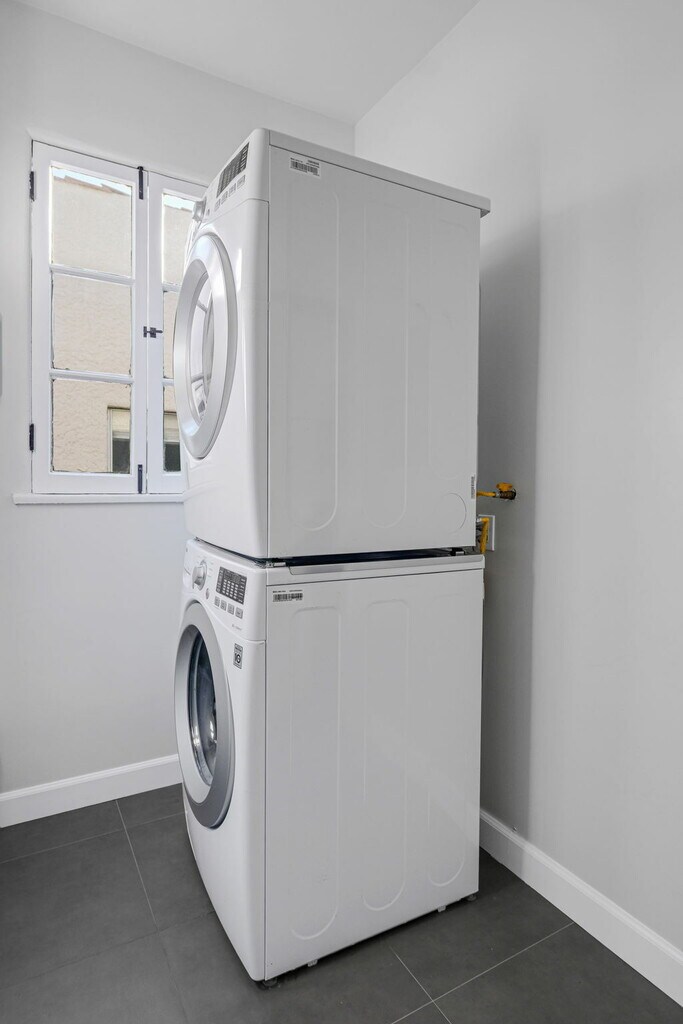 This Spanish style building has been extensively renovated from top to bottom, melding old world charm and character with modern luxury. An impressive new kitchen features chef's SS appliances, Carrara marble backsplash, and Caesarstone countertops. This 2BD + 2BA lower unit offers private ensuite bedrooms with Carrara marble bathrooms that match the kitchen to perfection. With brand new flooring throughout, HVAC, and private laundry rooms in each unit, no expense was spared in this remodel! Live the California lifestyle in this stunning new building with your private front patio. Stone's throw from Jon + Vinnys, The Grove, Melrose Farmers Market, and many more LA hotspots, don't miss out on this incredible lease opportunity! 1 car garage parking.