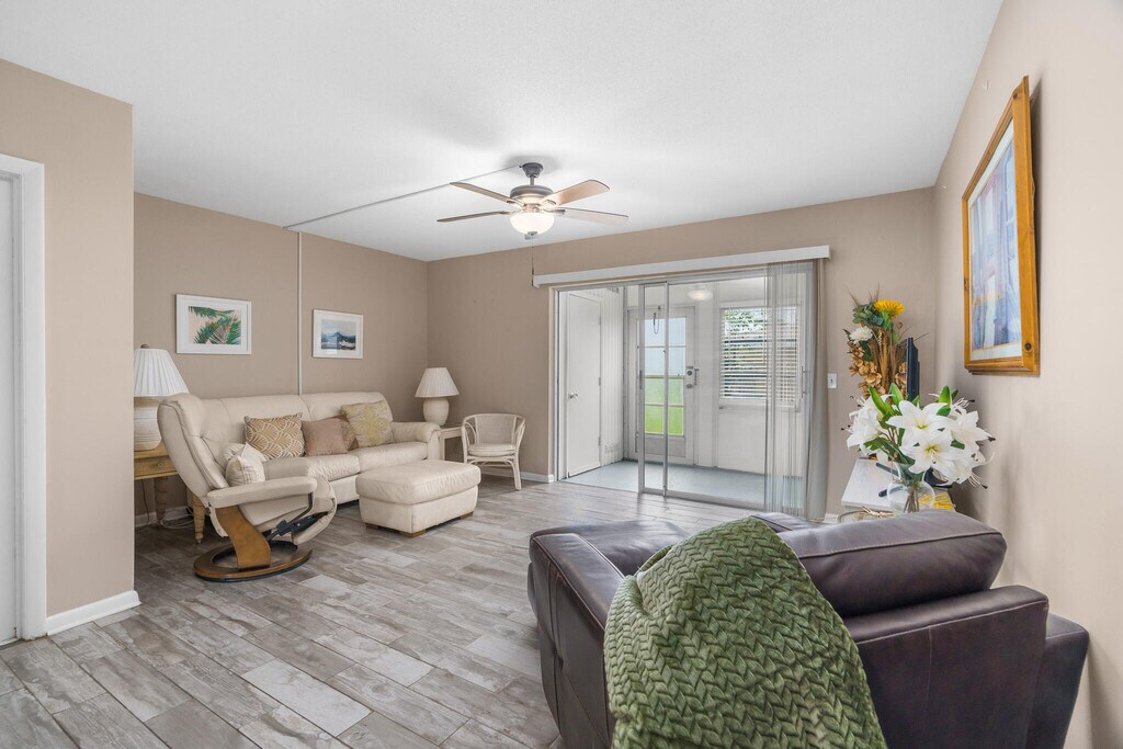 Ready for easy relaxed living? This spacious 2-bedroom,1.5-bath home nestled in a peaceful 55+ community is for YOU! Start your mornings on the screened-in patio overlooking a peaceful lush green spacethe perfect setting for coffee,Florida's fresh air,or meaningful conversation. Savor in a tranquil lifestyle with access to community amenities including a pool,sauna,library,and a clubhouse available for hosting your special events. Conveniently located just 10 minutes from the beach,shopping,dining,and the mall,this home offers the perfect balance of serene and coastal charm. Looking for your new escape and full-time retreat? This is your opportunity to enjoy comfort,connection,and the SoFlo sunshine you've been dreaming of! Schedule a tour NOW and make this your new home. MLS ID B26004224