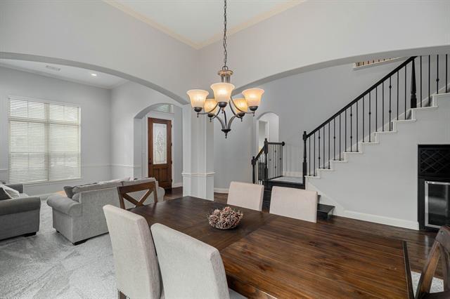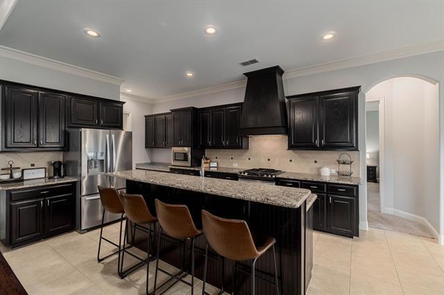 Beautiful stone & brick home with great curb appeal in the Village at Prosper Trail within much sought after Prosper ISD! Light, bright open floor plan makes entertaining a snap. Two bedrooms down and an additional two bedrooms up, three full baths, game room, media room, two living areas and two dining areas allow plenty of room to spread out. Tons of designer touches, wood floors, iron balusters, stainless steel appliances, granite countertops to name a few. Large covered area with gas connection and a flat usable backyard allows plenty of room for outdoor activities. Walking distance to Frontier Park and Prosper High School. Great proximity to the Dallas North Tollway & Highway 380.