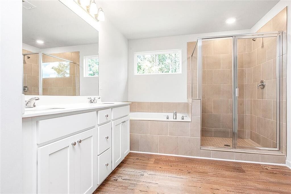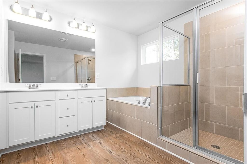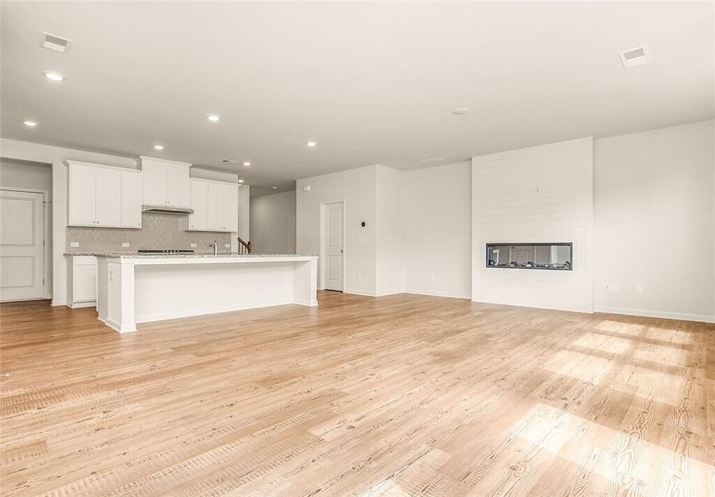 This stunning townhome offers an incredible blend of modern style and luxurious comfort. End unit,corner lot,this home boasts an open-concept design with sophisticated details throughout. Key features: 3 bedrooms,2.5 baths,large kitchen island perfect for meal prep and entertaining,paired with illuminating recessed lighting. Linear fireplace features a floor-to-ceiling shiplap surround creating a striking focal point in the living area. Exclusive chef's kitchen includes a gas cooktop,wall oven with touchscreen,microwave hood,stainless steel dishwasher,and refrigerator. Kitchen finishes are white cabinets with soft-close drawers,full tile backsplash,and luxury vinyl plank flooring extending through the main level. Primary suite offers spacious bedroom with a trey ceiling,adding height and elegance to the room. Private bathroom featuring a ceramic tile walk-in shower,cultured marble countertops,a linen closet,and a large walk-in closet for plenty of storage. Additional highlights second floor loft area ideal for a home office,playroom,or extra living space. Upstairs laundry room conveniently located near all bedrooms for easy access. Secondary bedrooms positioned opposite the primary suite for added privacy,sharing a full bath. This townhome also includes luxury vinyl plank flooring throughout the main level,bathrooms,and laundry room,offering durability and easy maintenance. Don't miss your chance to make this luxurious,move-in-ready townhome your new home.