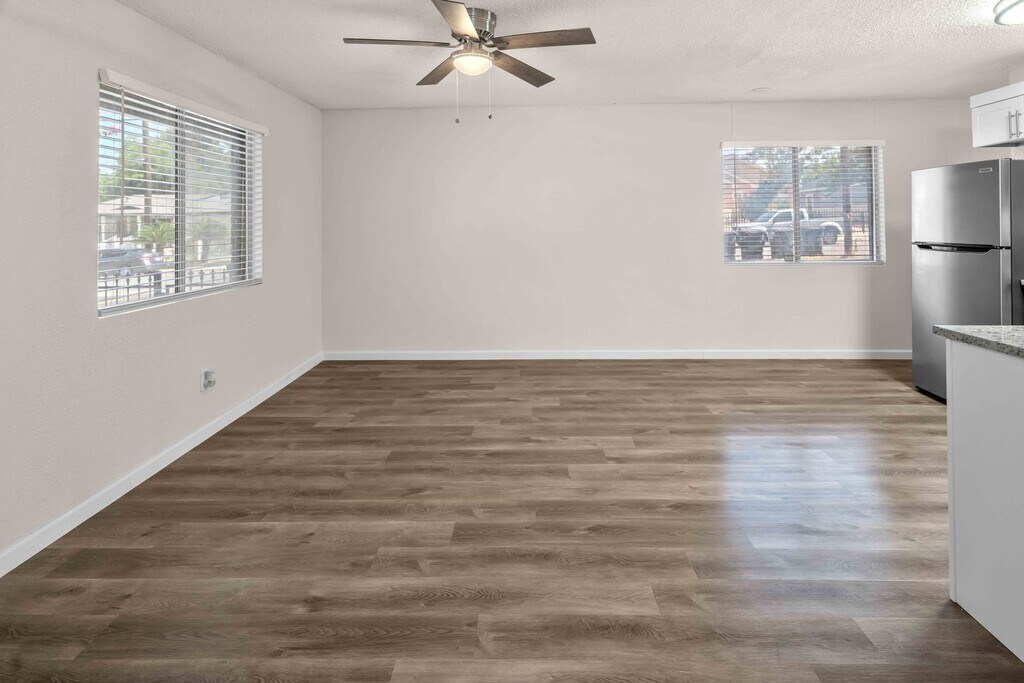 NEWLY RENOVATED! Wood floor throughout the entire home. NO CARPET. Quartz countertops, ceiling fans, window blinds/ private patio, playground on Property / BBQ area / backyard area for all tenants. Multiple units available for IMMEDIATE MOVE-IN!