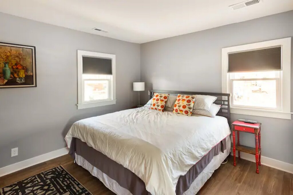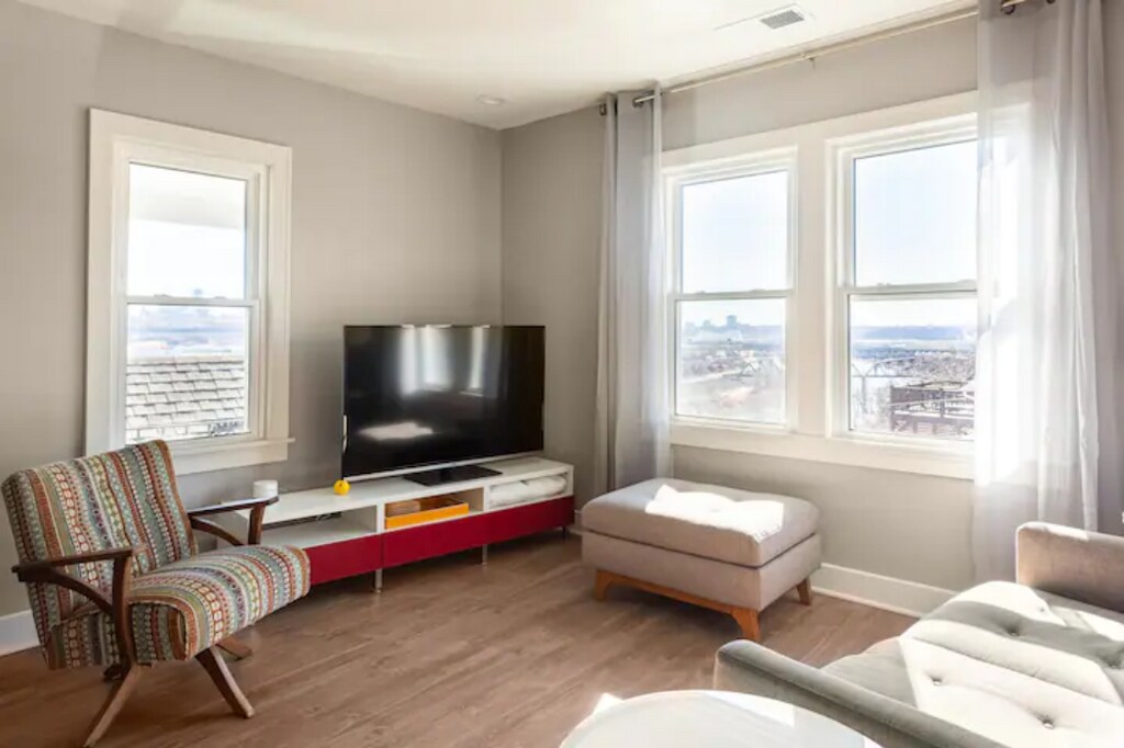 Amazing 1 bedroom, 1 bathroom townhouse in Kansas City. This is an upstairs apartment in a residential duplex with panoramic views of downtown. The advertised rental rate includes water and Internet, you pay only the BPU (electric) bill. Available partially furnished. Located in the vibrant Strawberry Hill neighborhood located just 5 minutes by car from downtown Kansas City, Missouri. WALK to restaurants, coffeeshops, grocery store and bars. The downstairs apartment unit is occupied by one of the building's two owners. The VIEWS of the KC MO skyline and the Kansas River (as shown) are incredible, remarkable, stupendous, haha ...truly, your guests' jaws will literally drop. The bathroom has heated floors for those chilly mornings. There is a small office and washer and dryer in the bedroom suite. You owe it to yourself to come check it out! You won't be disappointed!! Amenities included: balcony, central air, central heat, dishwasher, stainless steel appliance, updated kitchen, updated bathroom, storage, washer dryer, yard, heated bathroom floor, city skyline view, river view, and view of the west bottoms. Date Available: Nov 1st 2025. $1,295/month rent. $1,200 security deposit required. Please submit the form on this page or contact Steven at to learn more.